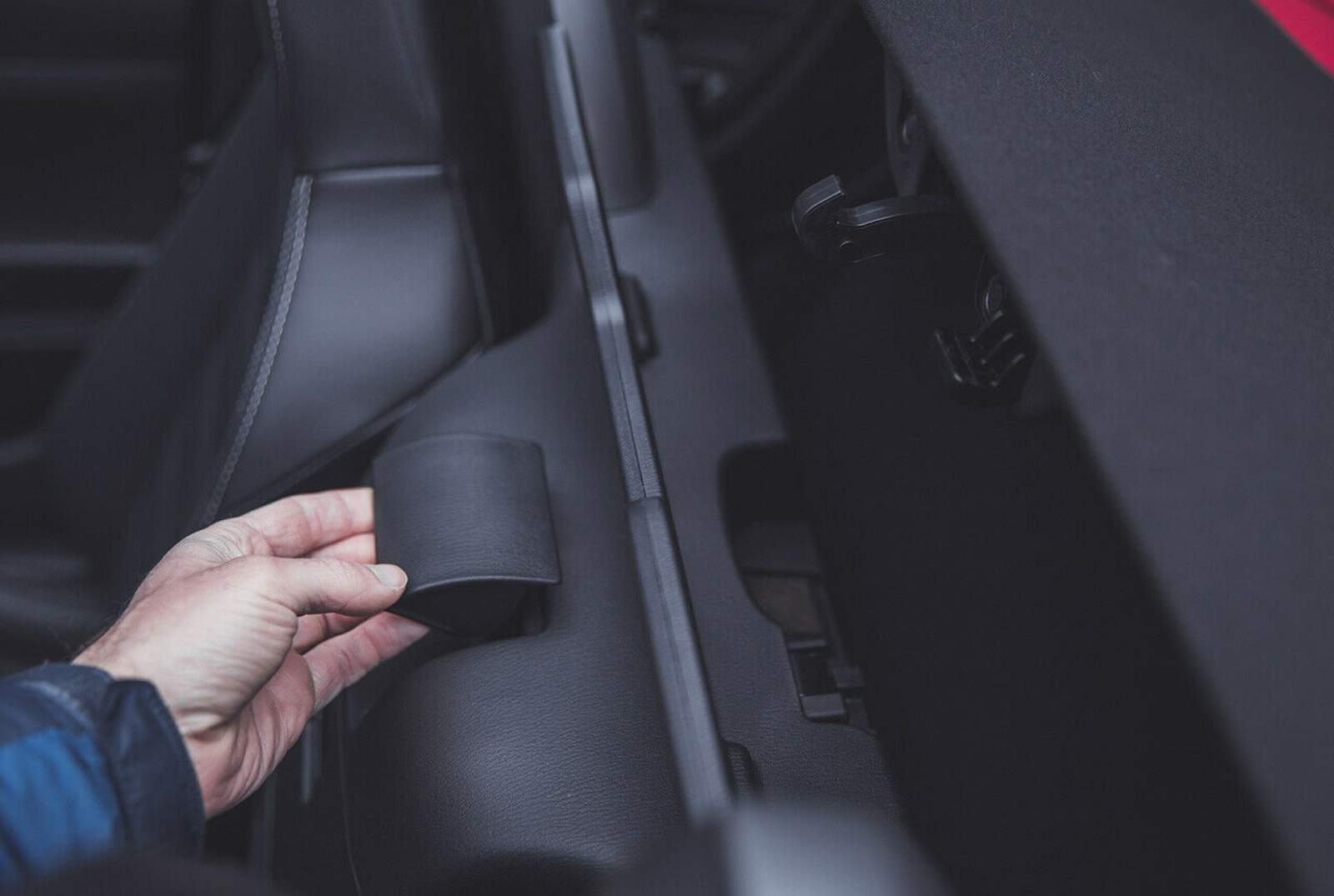 Der Hebel zum Entriegeln des Verdecks sitzt hinten zwischen den Sitzen