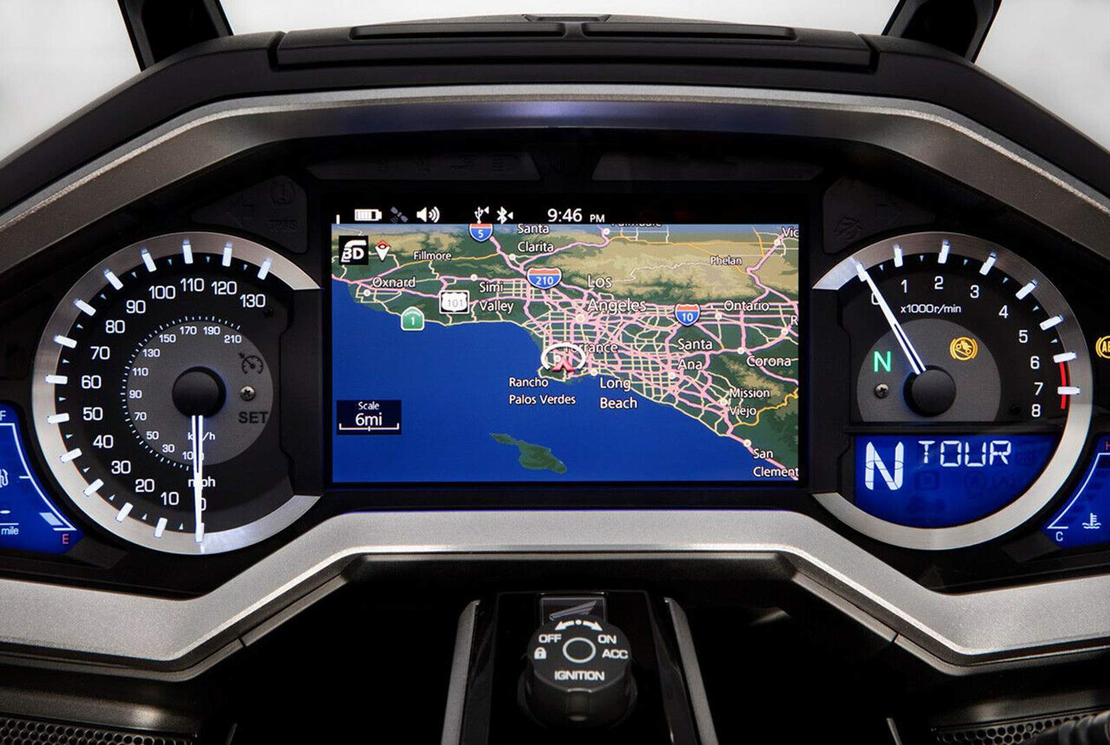 Das Navigationssystem der Gold Wing zeigt die Karte groß zwischen den Rundinstrumenten an