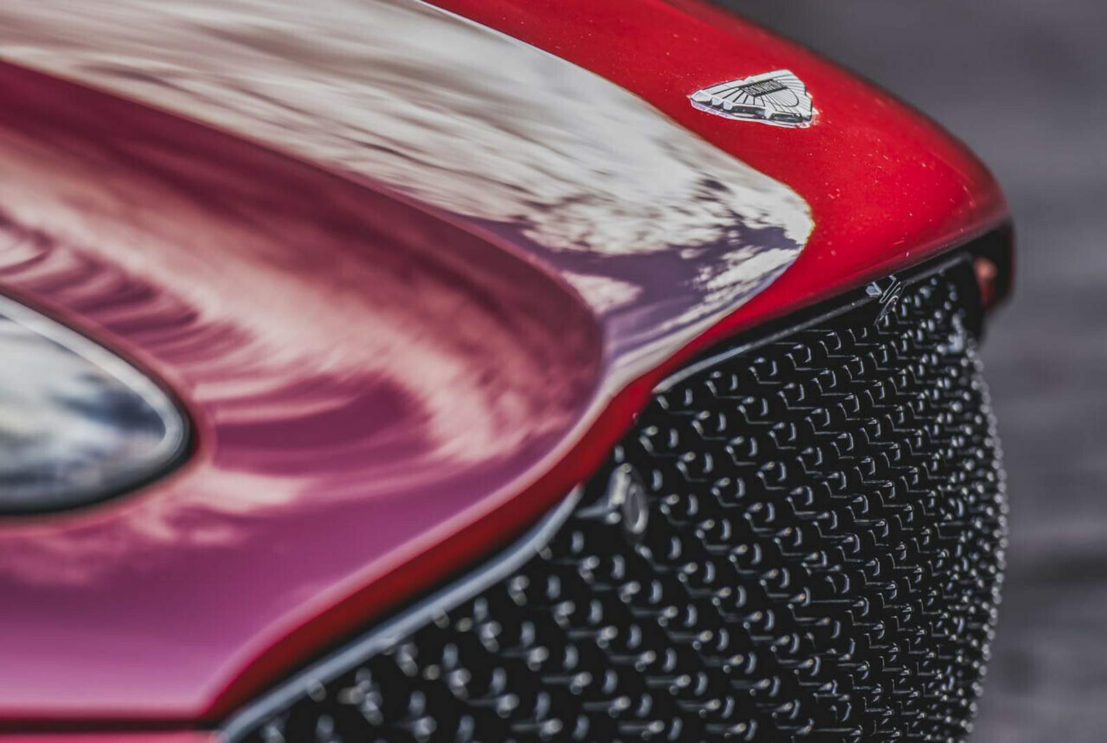 Das Markenlogo an der Front des Aston MartinDBS Superleggera kommt optional aus Gold