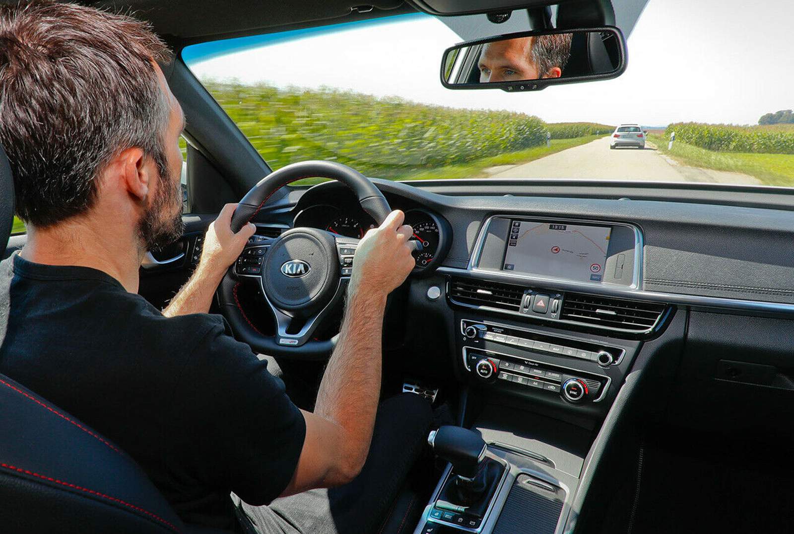 MT-Redakteur Heiko Dilk am Steuer des Kia Optima Sportswagon