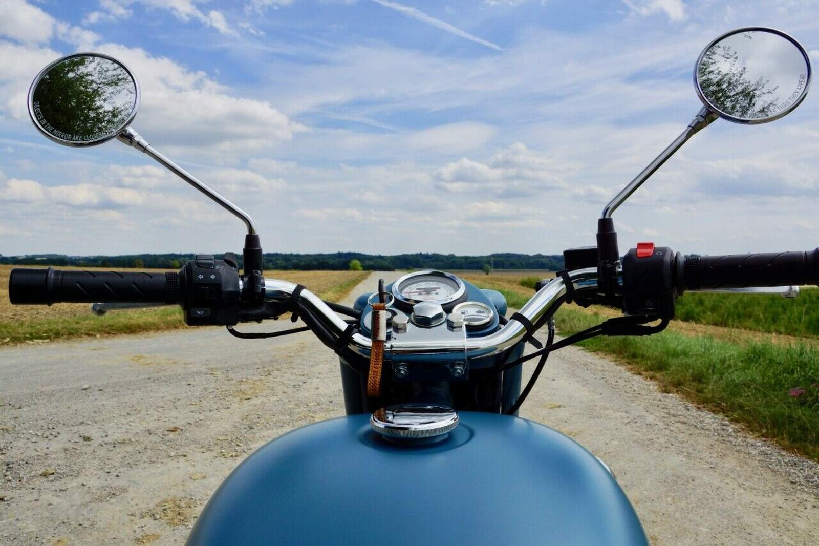 Ein ganz eigenes, uriges Fahrgefühl kommt auf mit dem entspannt platzierten Lenker in der Hand, dem Fahrtwind im Gesicht und dem puristischen Cockpit vor der Nase