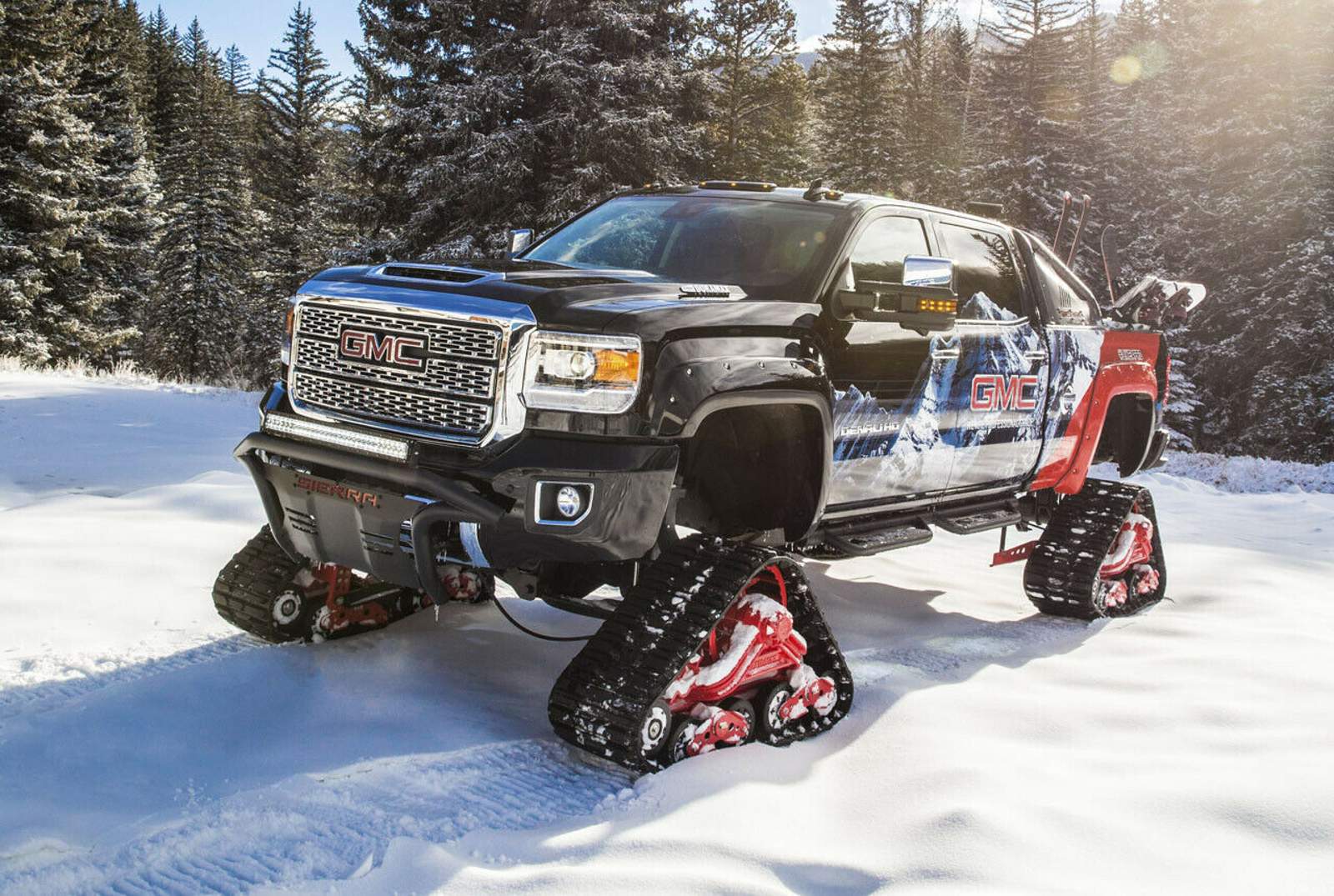Für den Antrieb des Schneeketten-Trucks sorgt ein 6,6-Liter-Turbo-V8