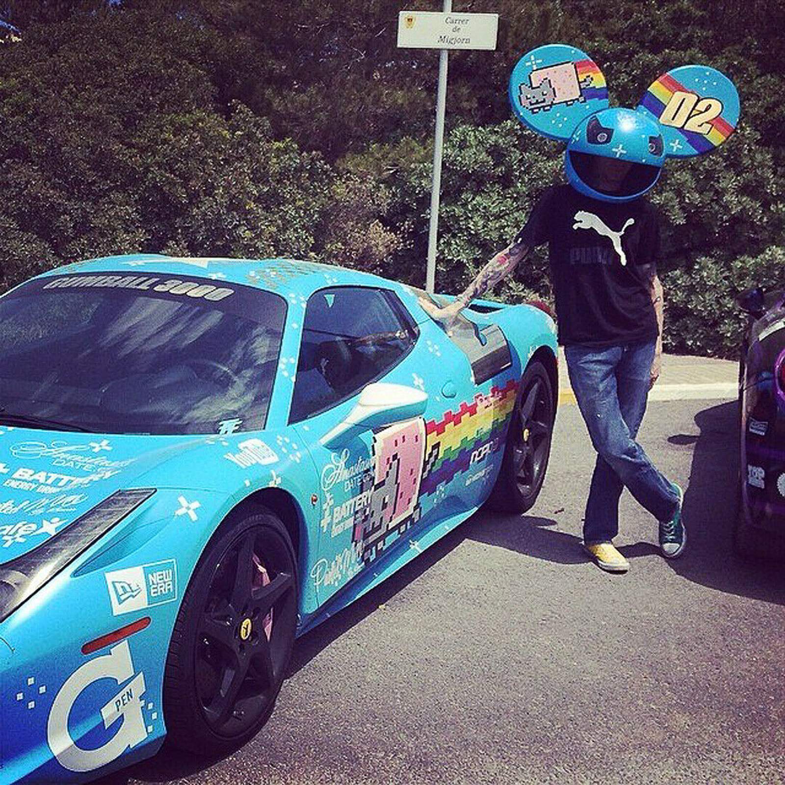 Deadmau5 mit seinen beiden Markenzeichen: Maus-Helm und Purrari
