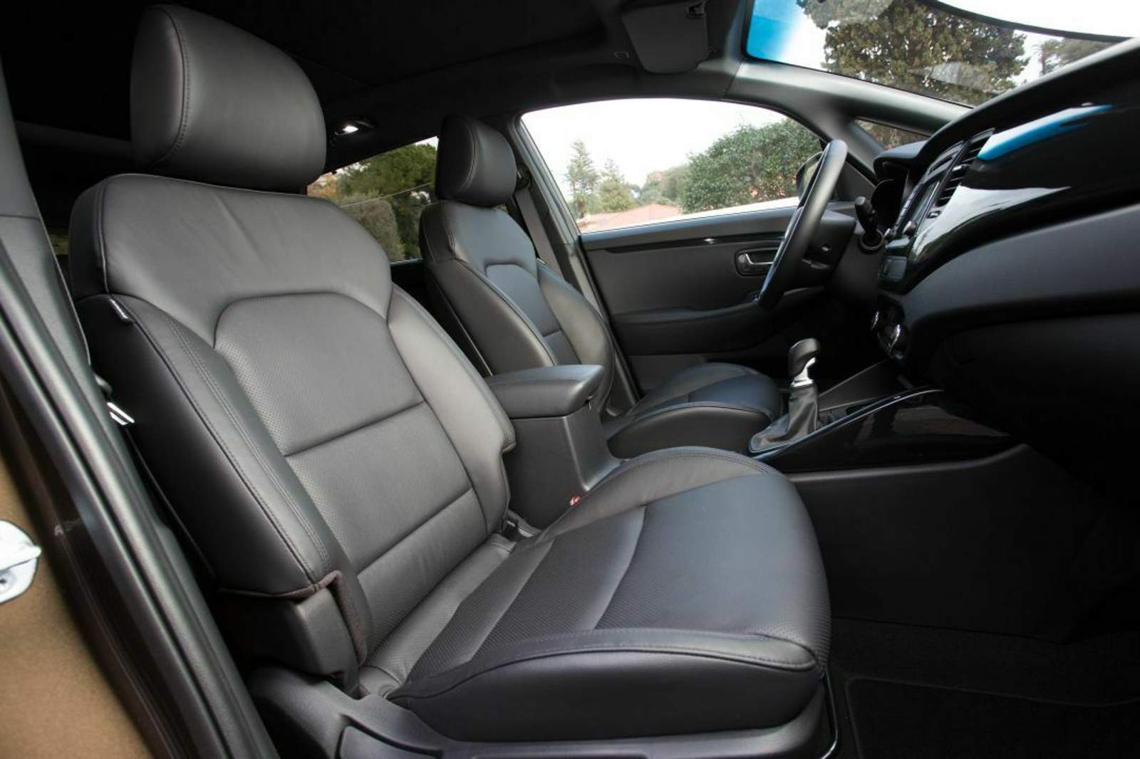 Kia Carens: Gegen Geld wird der Innenraum richtig fein, mit belüfteten Leder-Fauteuils.