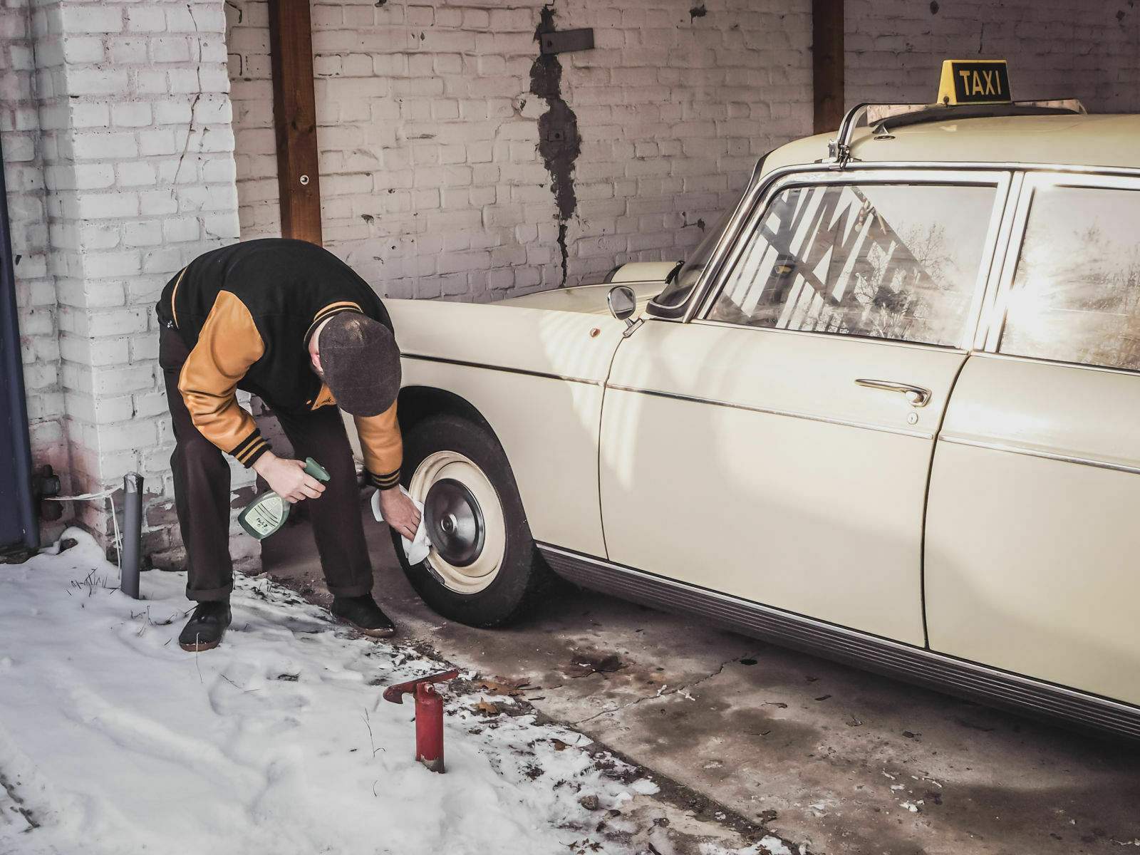 Vor jeder Fahrt bringt Zierau sein Kult-Taxi optisch auf Vordermann