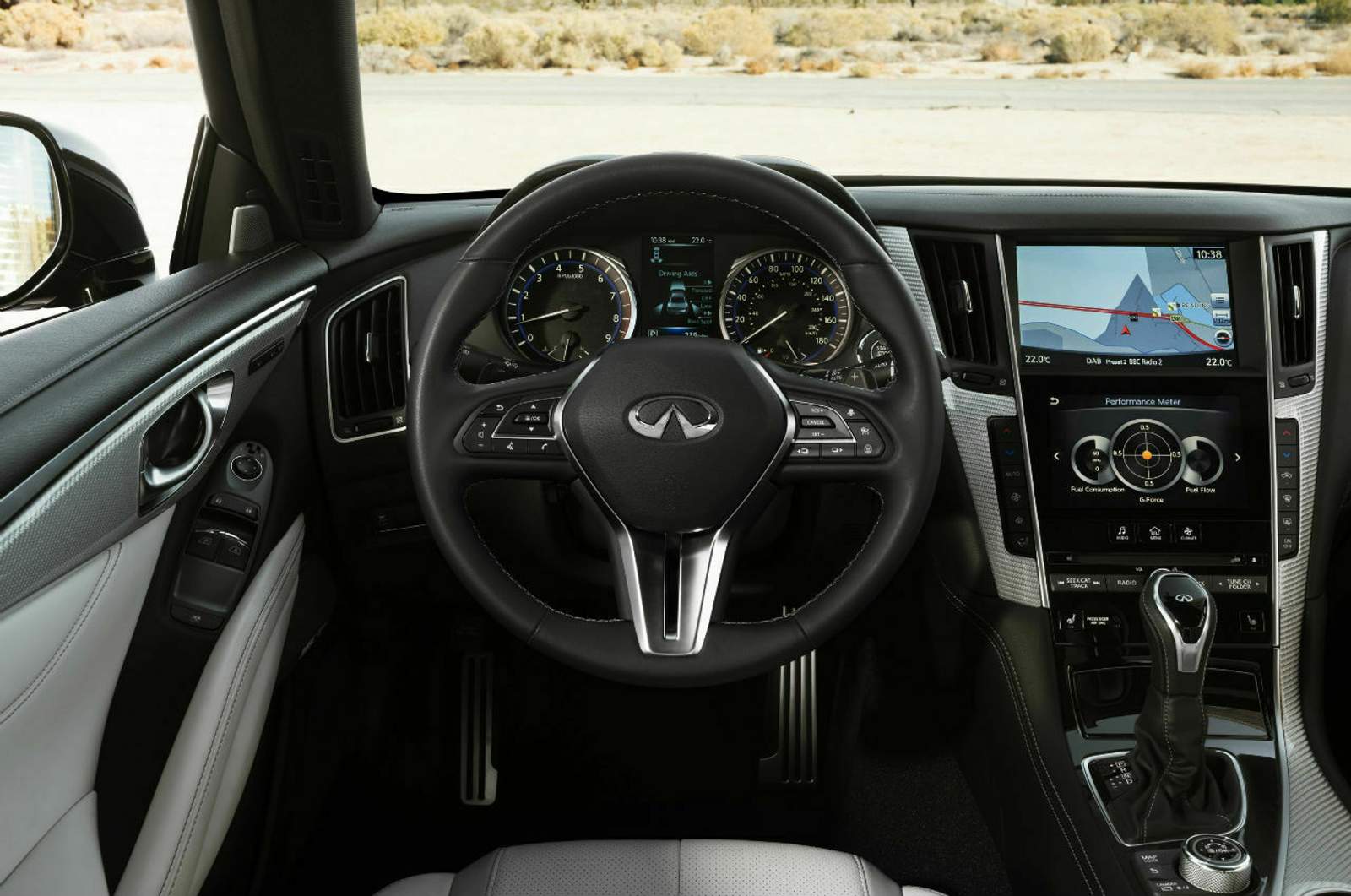 Armaturen und Bedienelemente des Q60 gleichen weitgehend der Limousine Q50
