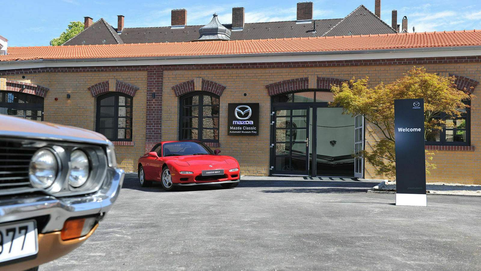 Vorn im Anschnitt das RX-4 Coupé von 1972, dahinter der RX-7 ab Baujahr 1991 mit 240 PS