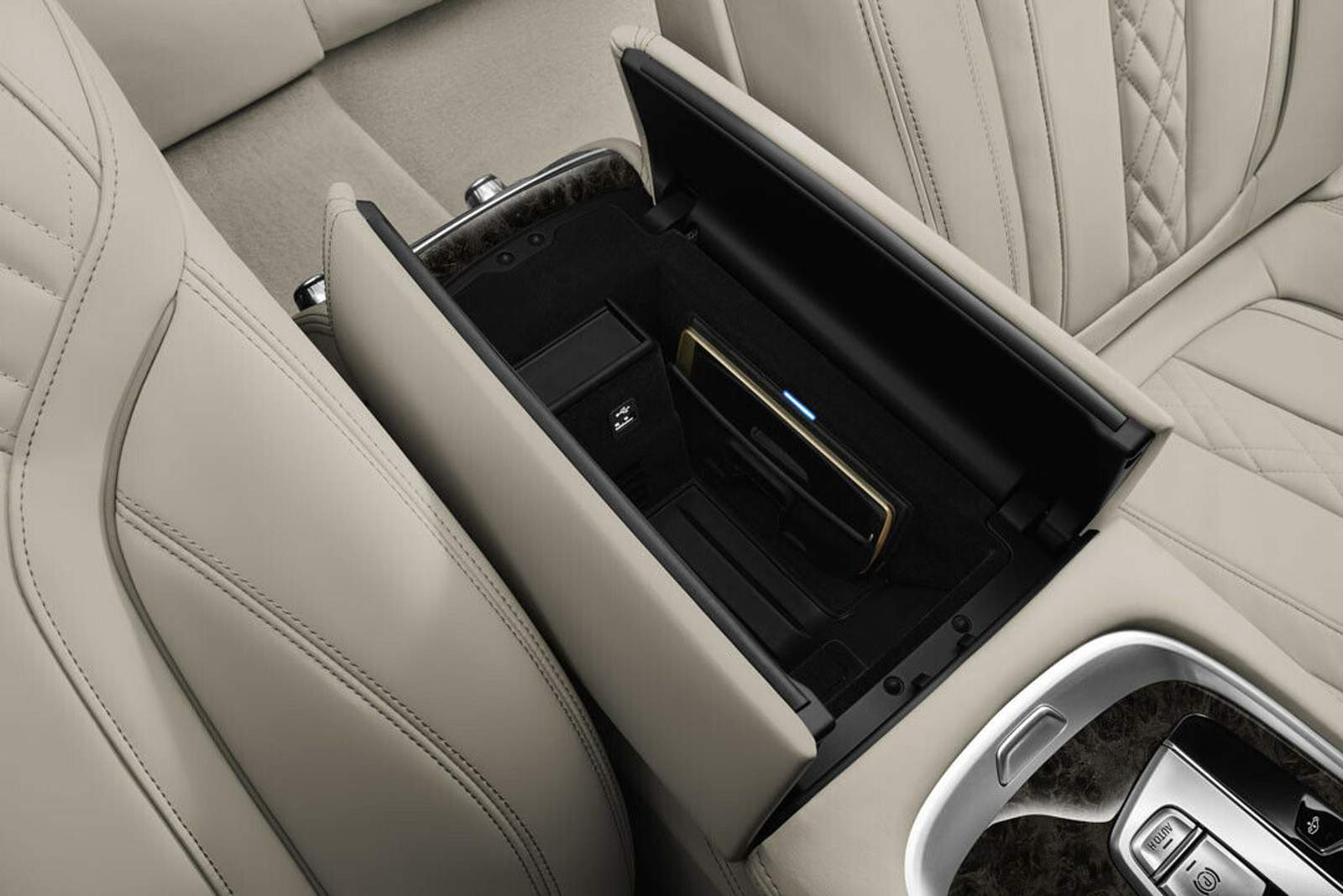 Blick in den neuen 7er: Hier wird das Smartphone serienmäßig ohne Kabel geladen