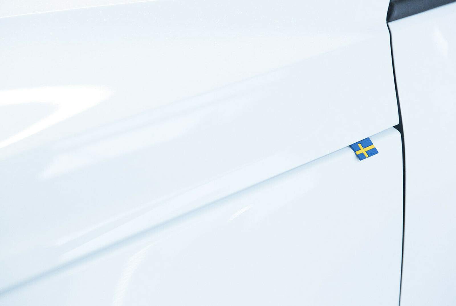 Schönes Detail: Volvo bringt eine kleine Gummiflagge am Vorderwagen an