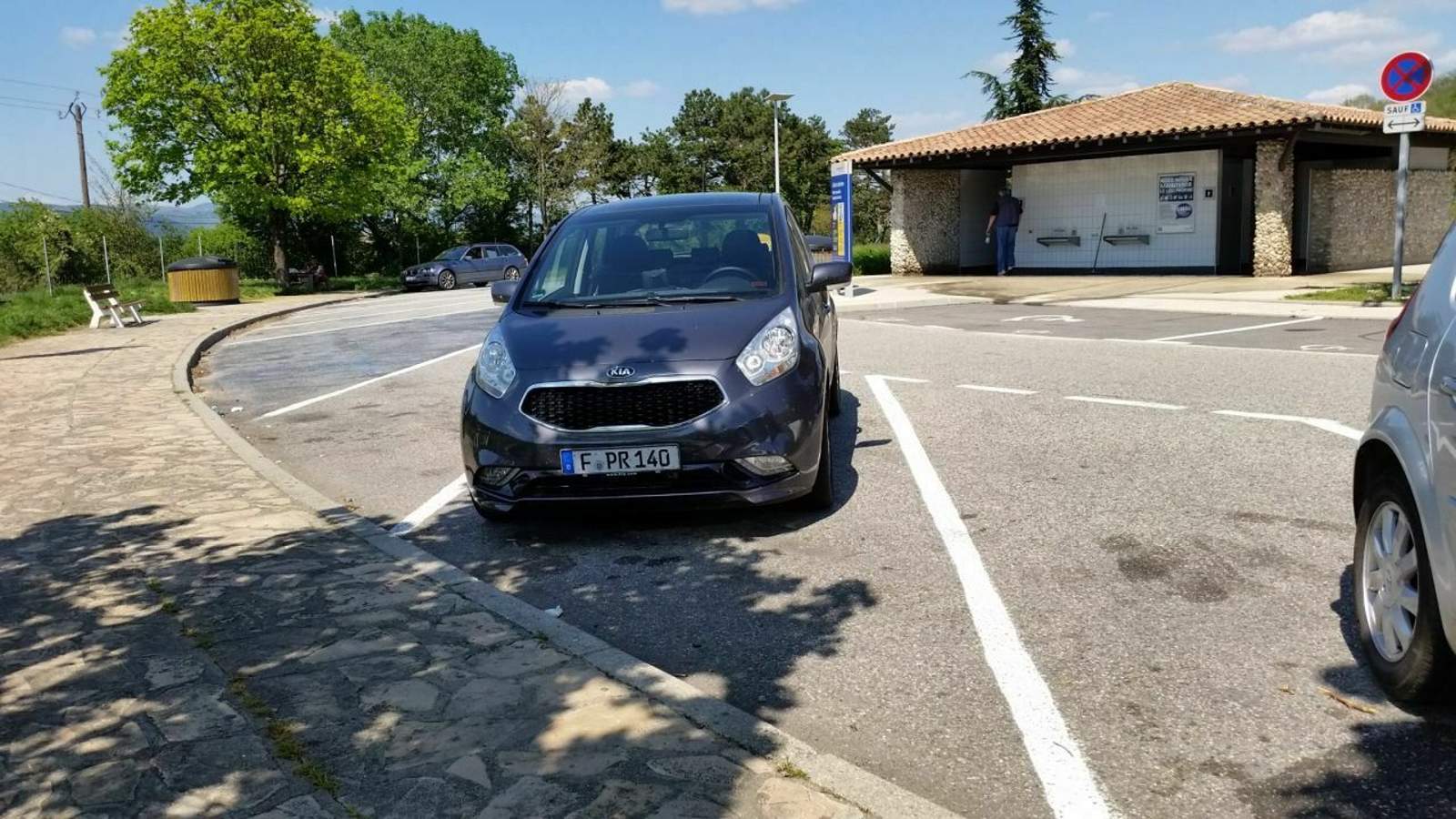 Der Kia Venga auf einem Autobahnrastplatz in Frankreich