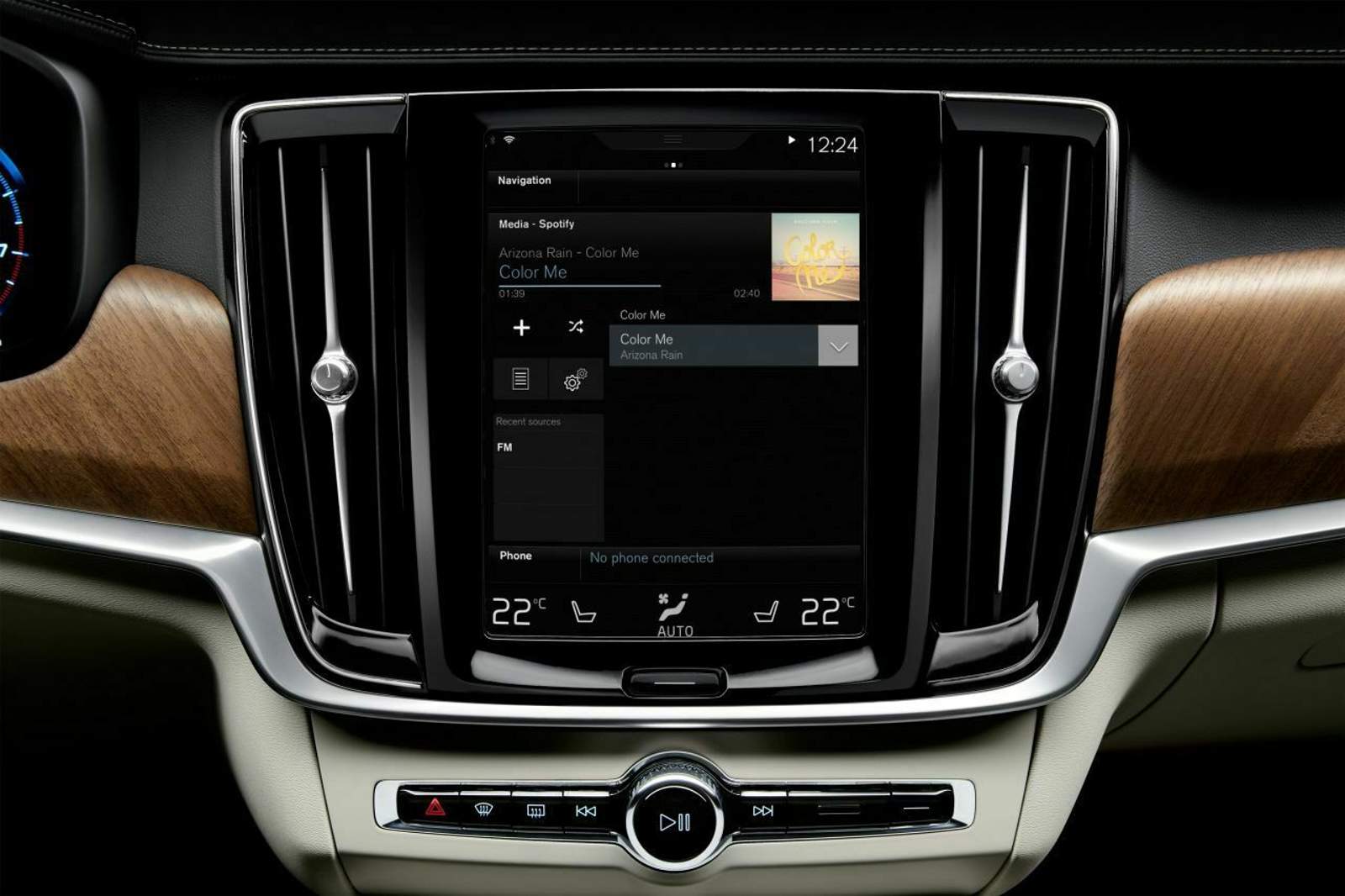 Die Lüftungsdüsen in V90 und S90 rahmen den Hochkant-Bildschirm des Infotainmentsystems seitlich komplett ein