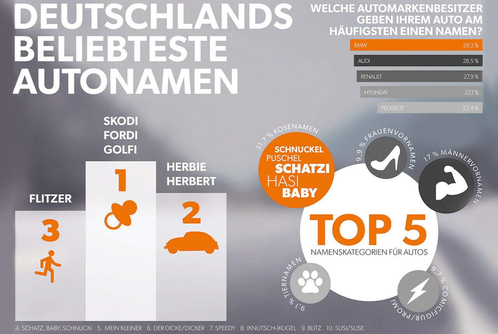 Top 3: Welche Autos sich wohl hinter "Skodi", "Fordi" und "Golfi" verbergen mögen? Bei Herbie und Flitzer ist das schon nicht mehr so leicht