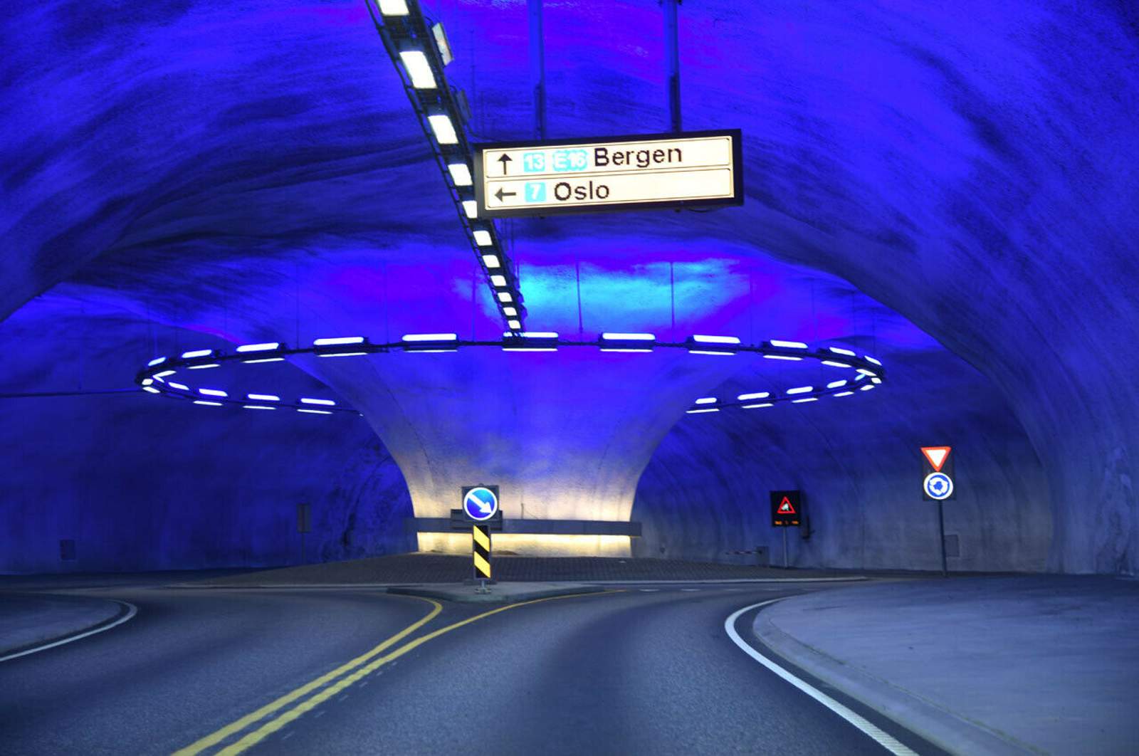 Der Laerdaltunnel, mit 26,51 Kilometern Länge der längste Straßentunnel der Welt. Und mit Kreisverkehr