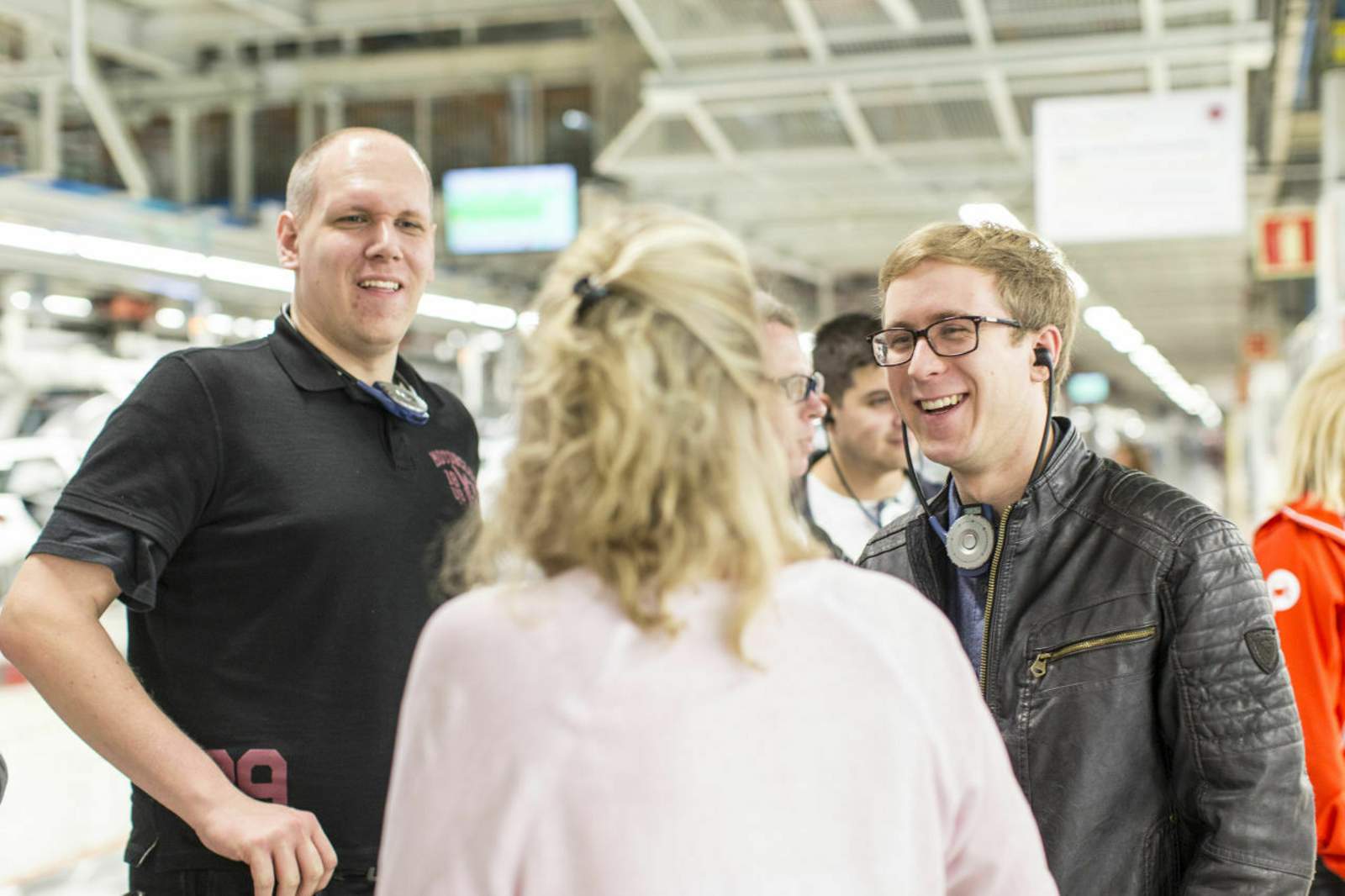 Im SEAT-Werk, Halle 10 – 'BigVanVader' (l.) will es ganz genau wissen: Wo wird der Klimakompressor eingebaut?