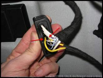 Dann kann der neue Leitungssatz mit dem Gewebeklebeband mit dem bisherigen Kabelbaum am Ausgang des Steckers zusammengewickelt werden und an der Fahrertür dann entlang vorhandener Kabel (Tankklappenschalter) bis zur TWL verlegt werden.