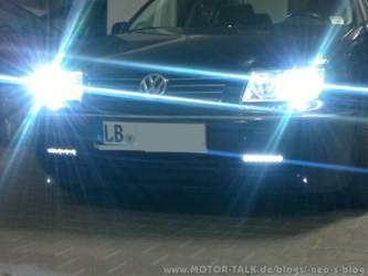 Anbei ein paar Bilder zu den Philips LED DayLight 8 Tagfahrleuchten, verbaut in den seitlichen unteren Lüftungsgittern beim VW BORA.