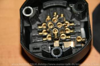 Im Zusammenhang mit der Umrüstung auf das Climatronic-Bedienteil von Golf VI / Passat CC haben einige Umbauer die beiden Stellmotoren einfach zusammen auf den einen angesteuerten Ausgang geklemmt. Da bei der alten Steuerung die Motoren aber nicht immer 1:1 identisch angesteuert werden bzw. ggf. sogar gegenläufig arbeiten, wollte ich mich mit so einer Lösung nicht abfinden, bei der nachher auch gar nicht nachvollzogen werden kann, ob die Motoren bzw. Stellklappen korrekt arbeiten. Allerdings sind in den Steckern alle Kontaktpins - auch die für den fehlenden Stellmotor - nach wie vor vorhanden...
