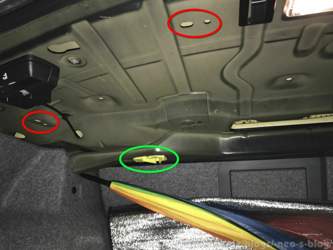 Es ist NICHT erforderlich irgendwelche Verkleidungen im Kofferraum zu demontieren. Das eine Bild durch die Klappe rechts im Laderaum aufgenommen, dient nur der Veranschaulichung der Lage der Rastnasen und Metallfedern. Man muss hier von innen aber rein gar nicht unterstützen oder auch nicht von aussen mit irgendwelchen Werkzeugen die Metallnasen zurückdrücken.