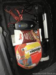 Eventuell hole ich mir noch die Universalhalter / Schirmhalter, also die zwei Gummilaschen, die am Abschlussblech im Kofferraum befestigt werden, um dort z.B. einen Regenschirm griffbereit zu fixieren... |