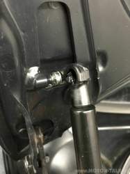 Ausbau: Beim Abhebeln der Sicherungsfeder (kann beim Ausbau entweder einfach mit Schraubendreher rausgehebelt oder angehoben und seitlich zum Ende der Gasfeder hin zur Seite geschoben werden) ist darauf zu achten, dass man nicht abrutscht und Karosserie oder sich selbst verletzt.