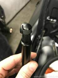 Einbau: Die neue Gasfeder lagerichtig (Zylinder "oben" an Klappe, Kolbenstange "unten" an Karosserie) ansetzen und auf die Kugelzapfen aufdrücken, bis die Sicherungsfeder wieder ganz eingerastet ist. |