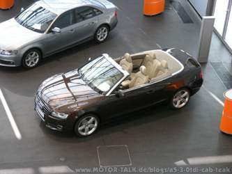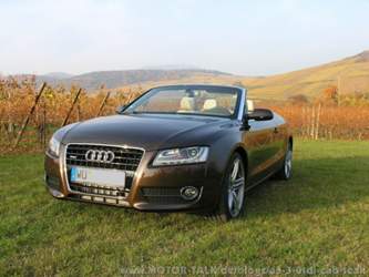 Würde ich in der Ausstattung noch weiteres ändern? - Den Fernlichtassistenten hatte ich ja schon angesprochen. Aber vielleicht wurde hier die Sensorik verbessert? Wahrscheinlich werde ich es sein lassen. - Wenn die Cruise Control bis 0km/h abbremsen kann, könnte sie einen zweiten Blick wert sein. - Die Rückfahrkamera kommt auf alle Fälle hinzu! Es gibt fiese Steine, die als Wegbegrenzung gedacht sind, die zu niedrig für die Parksensoren sind, aber gerade so unter den Stoßfänger passen. ... - Die 1000€ fürs Sportdifferenzial werde ich mir wohl sparen. Der Wagen ist zwar mit Sportdifferenzial etwas agiler in den Kurven, also beim Räubern von kurvigen Landstraßen schon sehr angenehm, aber 1920kg Leergewicht der Serienausstattung wollen erst mal geschaukelt sein. Es ist halt einfach kein Sportwagen, egal ob mit oder ohne. - Wahrscheinlich werde ich auch von 19" Felgen auf 18" zurückgehen. Natürlich sehen die 19" klasse aus. So mancher wirds nicht verstehen, weil er auf alle Fälle 20"er montiert. Es ist eine sehr subjektive Entscheidung. 18" erscheinen mir für den Wagen am ausgewogensten zu sein. Außerdem macht es sich noch einmal im Geldbeutel bemerkbar - und man muß keine Bedenken vor Bordsteinkanten mehr haben. - Noch ein Streichkandidat ist das große Soundsystem. Ohne Frage liefert es hervorragende Ergebnisse, aber Cabrio und Konzertsaal, das passt nicht so recht. Da wird es wahrscheinlich auch das kleinere System tun. - Ohne Frage bleibt das große Navi. Die Bedienung und die Ergebnisse möchte ich nicht missen. - Schön wäre es, würde Audi das Sprachdialogsystem offiziell fürs Cabrio freigeben. Es funktioniert wunderbar, auch ohne Dach. Es gibt im Konzern auch Cabrios, bei denen das SDS ganz offiziell das tut, was es soll ... - Das dynamische Fahwerk in Kombination mit DriveSelect verändert den Charakter des Fahrzeugs. Von Sänfte bis knackig ... Das habe ich weder bei MagneticRide beim TT noch beim Pendant bei Porsche in dieser Effektivität erleben können. - Auch wenn es nur eine Kleinigkeit ist: Der Anfahrassistent ist ein Luxus für kleines Geld, der jeden Cent wert ist. - 3.0TDI oder 2.0TFSI wird sich anhand der voraussichtlichen Nutzung entscheiden. Der Diesel ist jedenfalls sehr, sehr angenehm zu fahren und hat, bei Bedarf, auch die notwendige Kraft. Vielleicht wird sich die Wahl auch einfach danach richten, daß ich ruhiger geworden bin? - teak? In Kombination mit beige im Interieur eine gute Wahl, und natürlich mit braunem Verdeck. Zum Abrunden des Bildes
