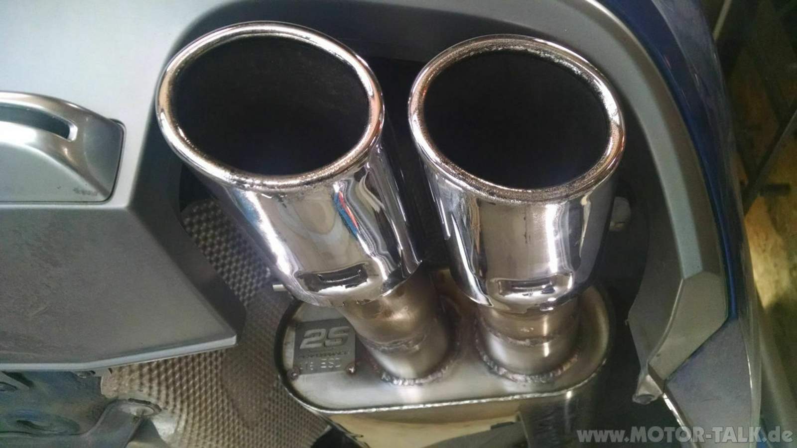 Und was ich bis jetzt sagen kann: Perfekt! Absolut saubere Arbeit, extrem akurat und alles wie vorher besprochen. - 70mm Anlage mit Vorschalldämpfer und Endschalldämpfer rechts / links - Klappensteuerung und Endrohre von der originalen Audi Anlage übernommen - inklusive TÜV-Gutachten