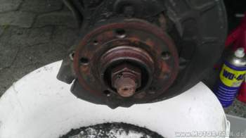 Hier musste ich der Bremsscheibe ebenfalls Zuspruch mit einem Hammer gönnen.