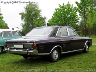 Doch damit nicht genug kam dann im November 1969 das neue Flagschiff von Ford dazu, der 26m mit 2,6Liter V6 125PS, Automatikgetriebe, Servolenkung, Scheibenbremsen und einigem mehr. Charakteristisch waren die Doppelscheinwerfer und das serienmäßige Vinyldach sowie die rundumgetönte Verglasung und schicke Radvollblenden. Es gab ausserdem ein damals überragendes Blaupunkt Radio inclusive Überblendregler und Fondlautsprecher und so wundervolle Polsterfarben wie "Elfenbein" oder "Olivgrün" und "Jadeblau". Die Beschleunigungswerte lesen sich auch heute noch gut mit 10,4 Sekunden auf Tempo 100 und einer Spitzengeschwindigkeit von 180km/h.