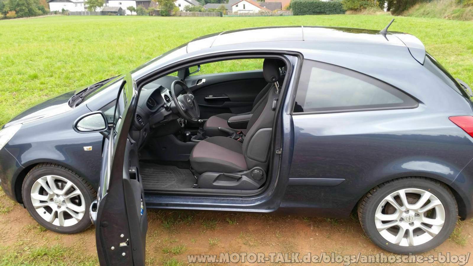 3. Das Finale Der Verkäufer, ein dipl. Ingenieur und Dozent an meiner Uni (Kollege Zufall grüßt), machte einen ehrlichen und seriösen Eindruck. Das Auto, ein metroblauer Opel Corsa D 1.4 Sport mit 90PS und 67TKM auf der Uhr für 5900€, stand abgemeldet und ohne TÜV in der Garage. Was sich nach dem Worst Case anhört, hatte einen einfachen Grund: Der Corsa konnte wegen Nachwuchs nicht weiter genutzt werden. Das Auto war schon länger im Internet inseriert. Es ist mir bis heute unklar, wieso ich das Auto übersehen habe. Der Verkäufer erzählte uns, dass vor einigen Jahren der rechte Außenspiegel abgetreten wurde. Weiterhin war das Fahrzeug wegen eines Parkremplers beim Dellendoktor. Diese Info muss er mir geben, doch hätte er sie verschwiegen... ich würde es wohl nie herausfinden. Die Probefahrt verlief positiv, um es etwas fachmännisch zu formulieren Wir einigten uns auf einen Preisnachlass von 50€. Im Gegenzug bezahlten wir die Kurzzeitkennzeichen, die für die Probefahrt notwendig waren. Den TÜV ließ der Verkäufer erneuern. Das war auch gut so, denn es stellte sich heraus, dass eine der beiden vorderen Federn gebrochen war. Weiterhin mussten die Trommelbremsen gereinigt werden, weil diese nach der langen Standzeit nicht mehr richtig schlossen. Am 08.09.2014 war es dann vollbracht!