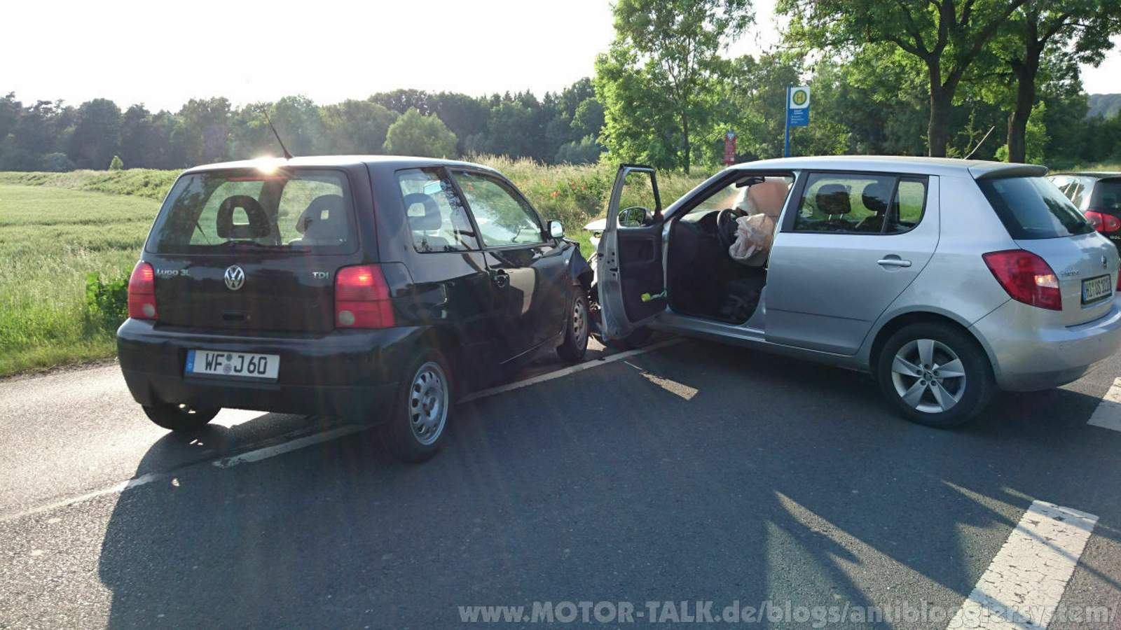 Gut das dir nichts passiert ist, der Fabia scheint in der Front etwas weicher gebaut zu sein.