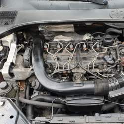 Nun müssen wir im Motorbereich ein paar Sachen erledigen: - Batterie abklemmen (da wir die Lichtmaschine ausbauen wollen) - Motorabdeckung abnehmen - Ansaugrohr vom Luftfilterkasten zum 1. Turbolader abnehmen
