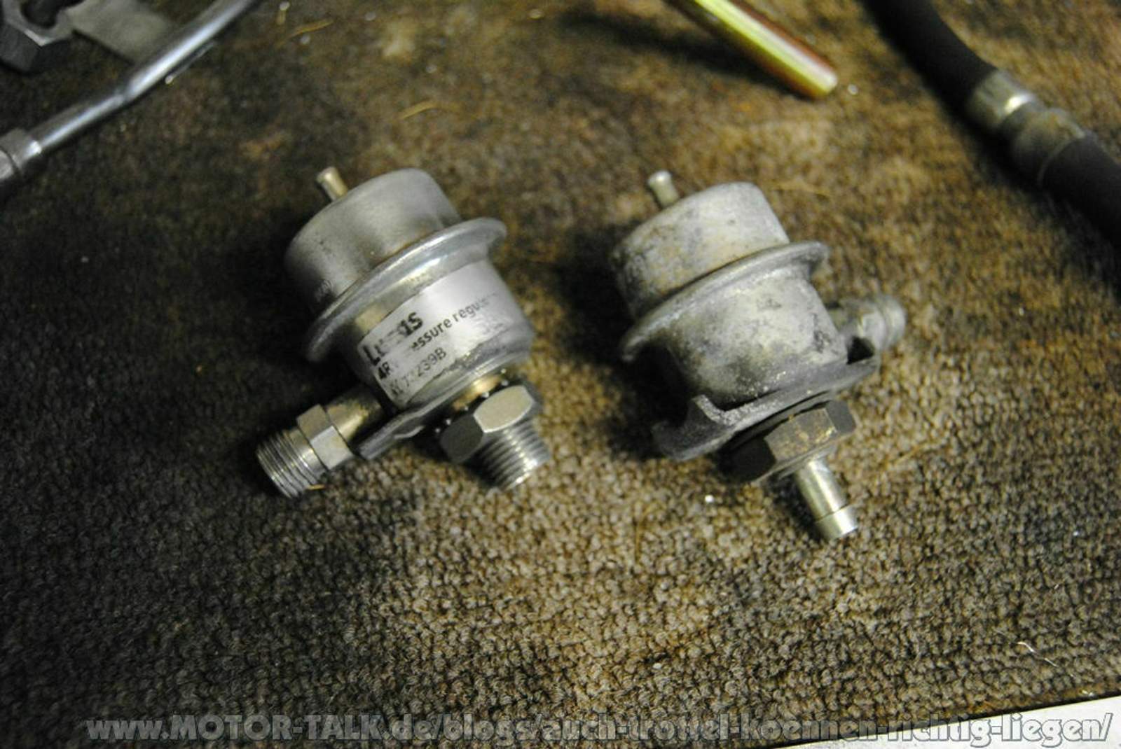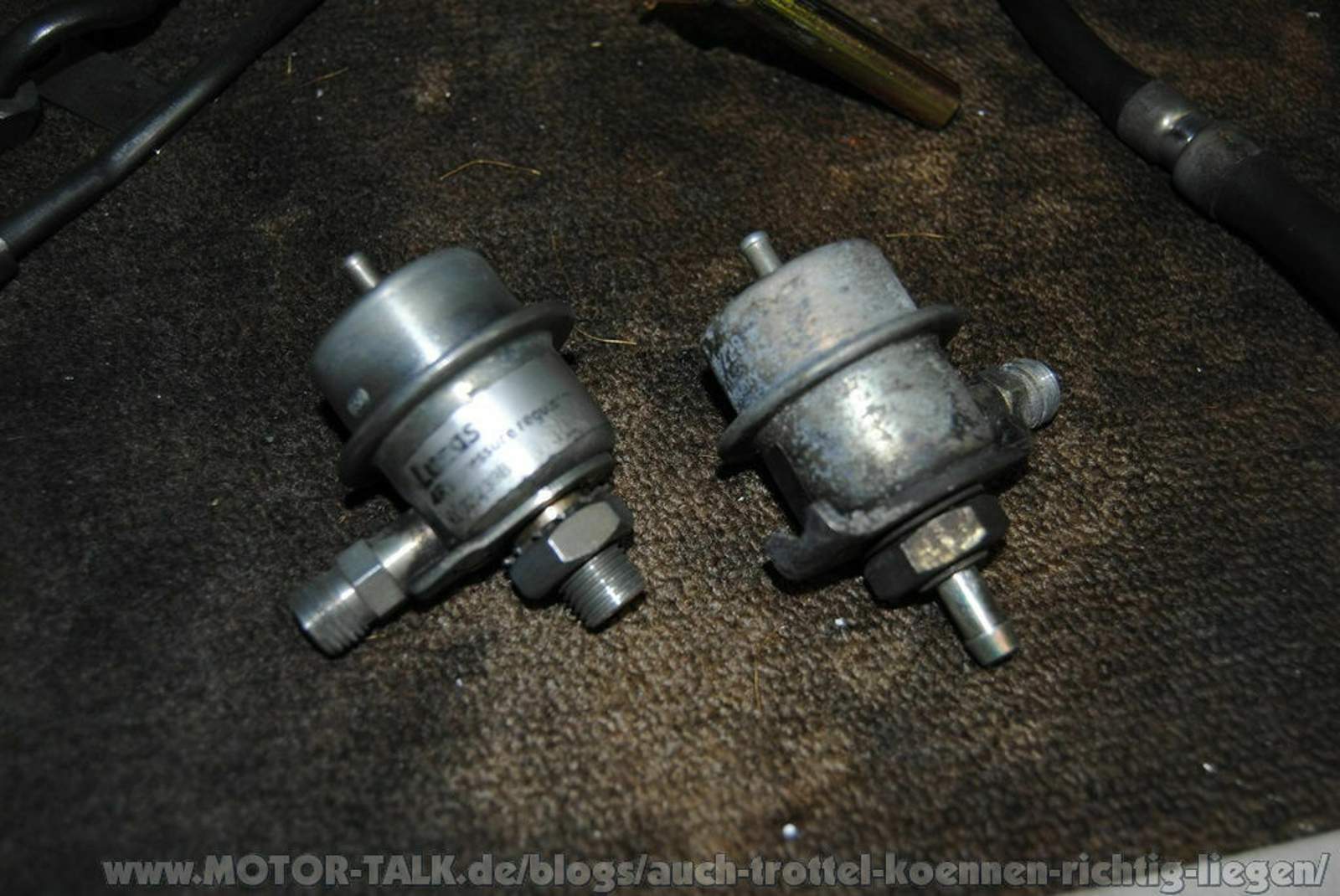 Im selben Schwung wurden beide Benzindruckregler bearbeitet. Dort wurde die Korrosion abgeschliffen und danach mit Politur/Versiegelung gegen ein (kurzfristiges) erneutes vergilben geschützt. Hoffentlich bleiben sie noch so wie sie jetzt aussehen