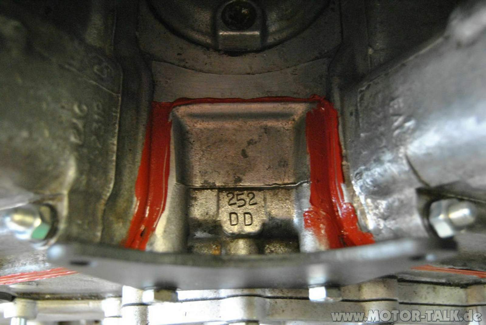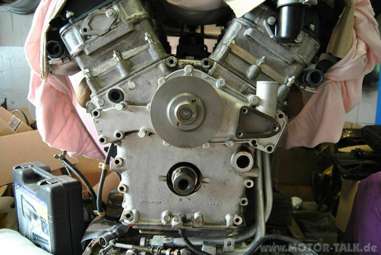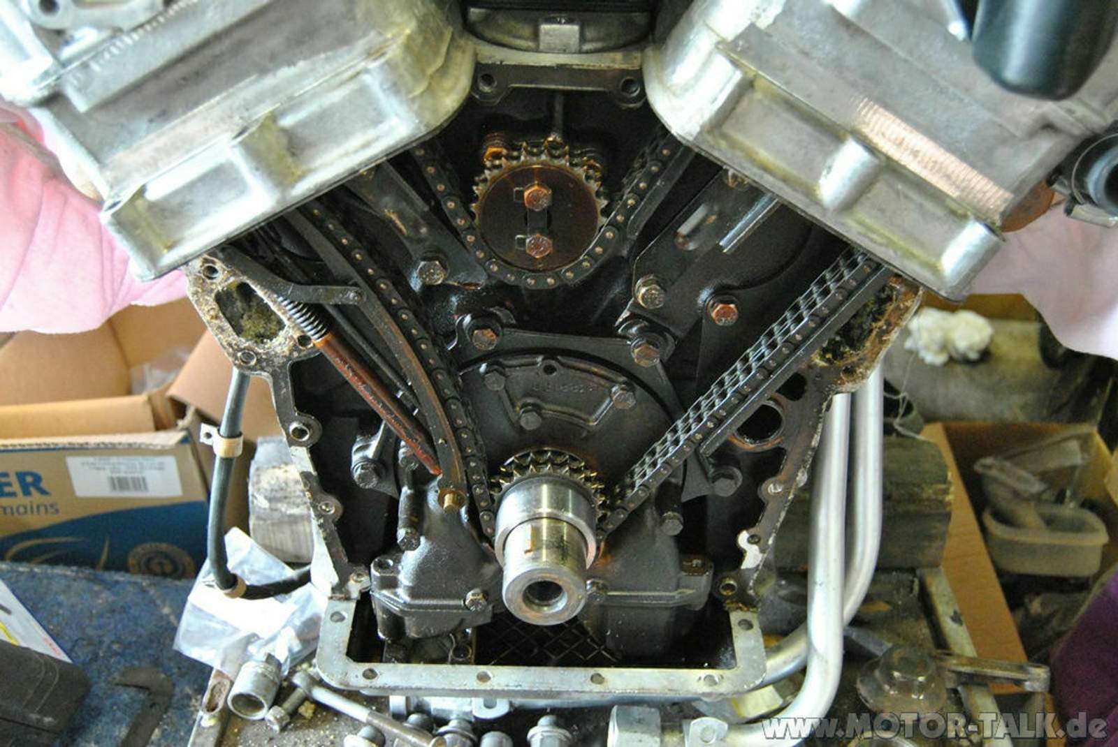 Damals hatte ich den vorderen Stirndeckel abgenommen, da ich sicherstellen wollte, dass der alte Kettenspanner (auch wenn es ein prähistorisches Bauteilchen ist) noch heile ist.