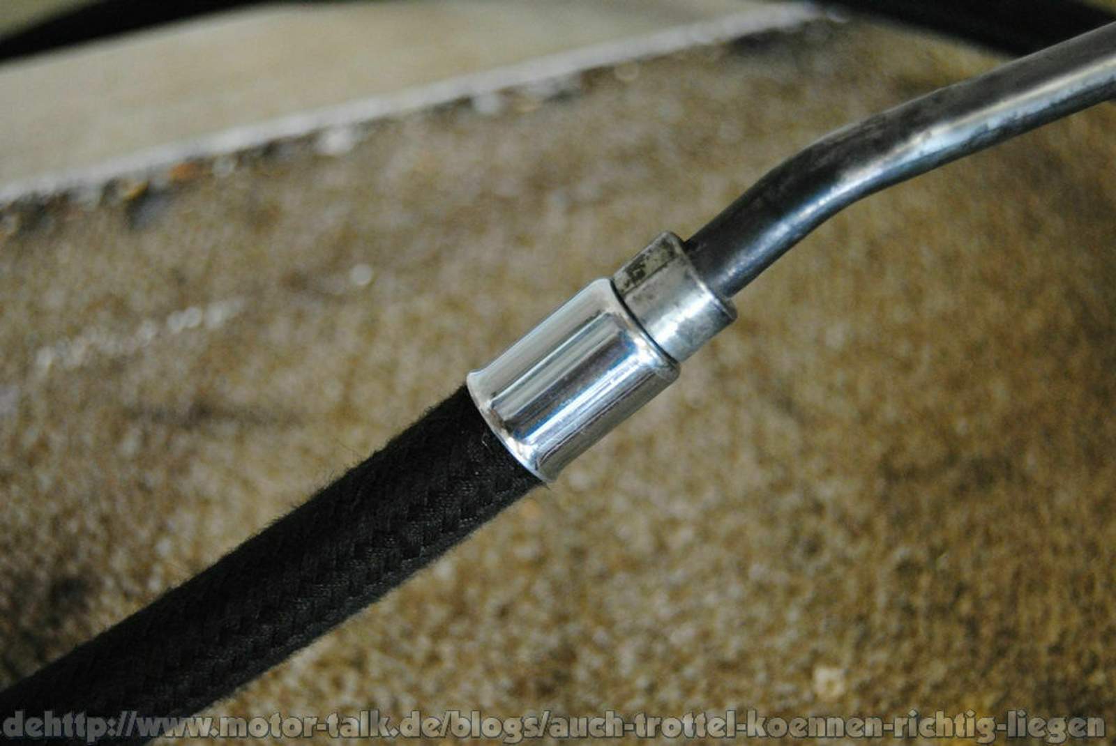 Also suchen wir diese auf. Zuerst, naja, ein Riesenumweg für nichts. Toll! Die Firma stellt nicht für Privatkunden her. Da war es mir zu dumm. Somit ab zum zweiten. "Nein, nein! Das kann man nicht nachbauen!" und was ist mit aufarbeiten? "Nein, nein! Das geht auch nicht. Die Leitung ist verlötet. Da kann man nichts machen. Ersetzen Sie die Leitung direkt mit einer flexiblen, stahlummantelten Leitung!". Als Alternative klingt das natürlich nicht verkehrt. Also habe ich mri für 10€ 1m Leitung geben lassen. Ist ja nicht ein Wucherpreis.