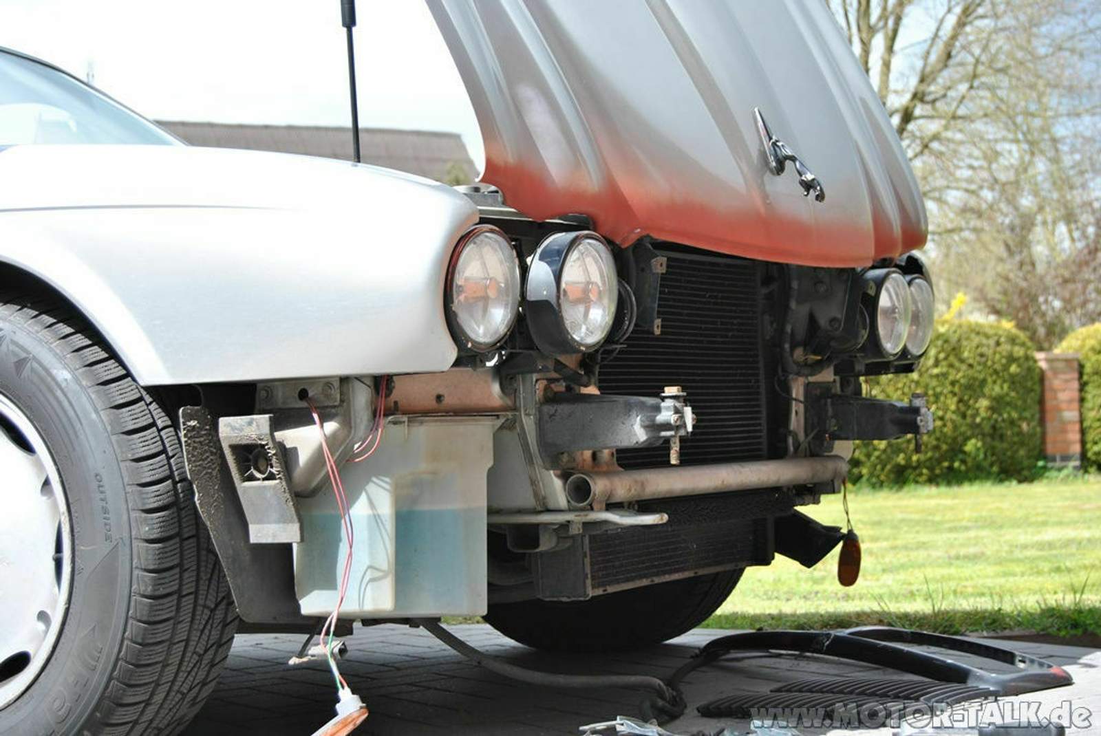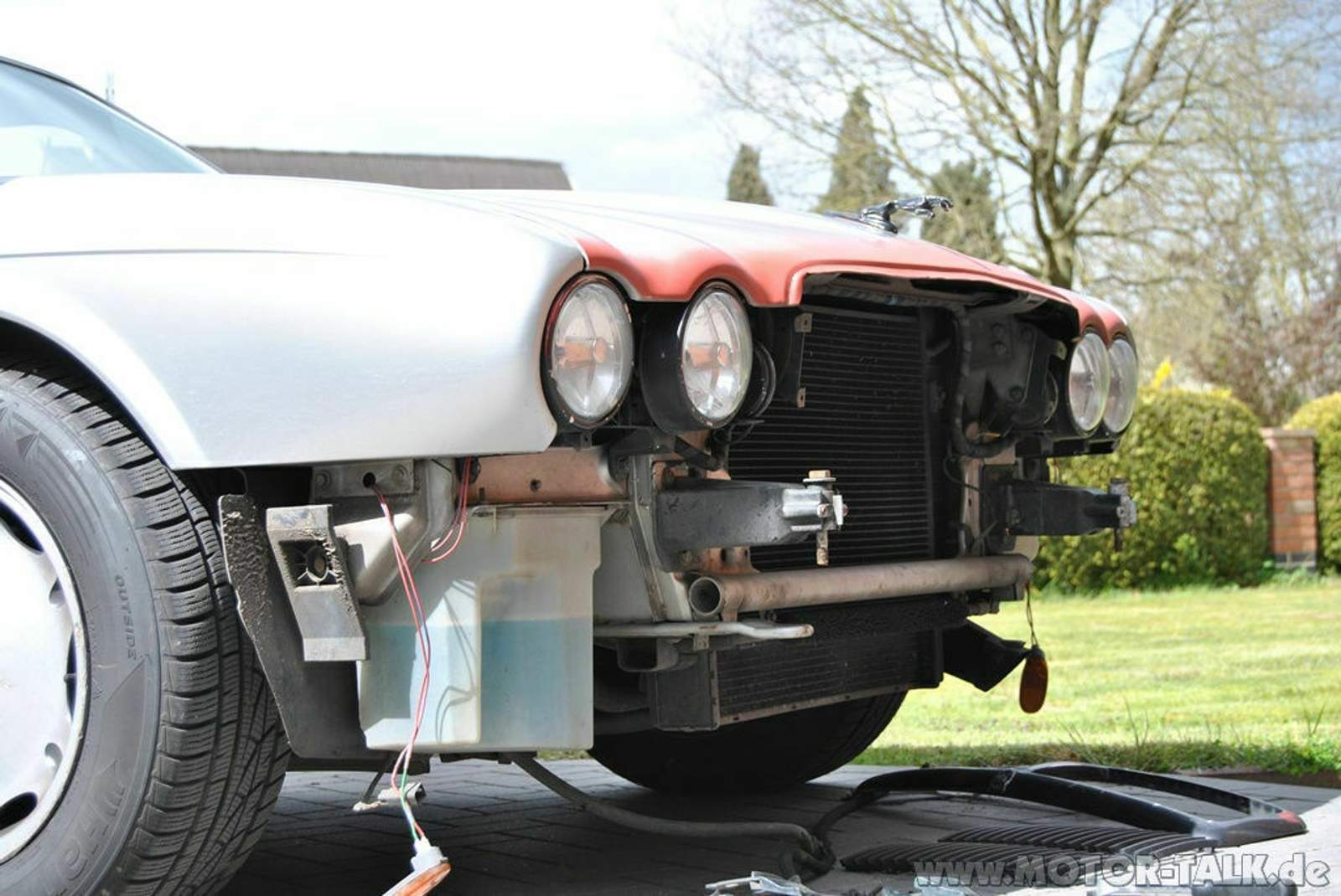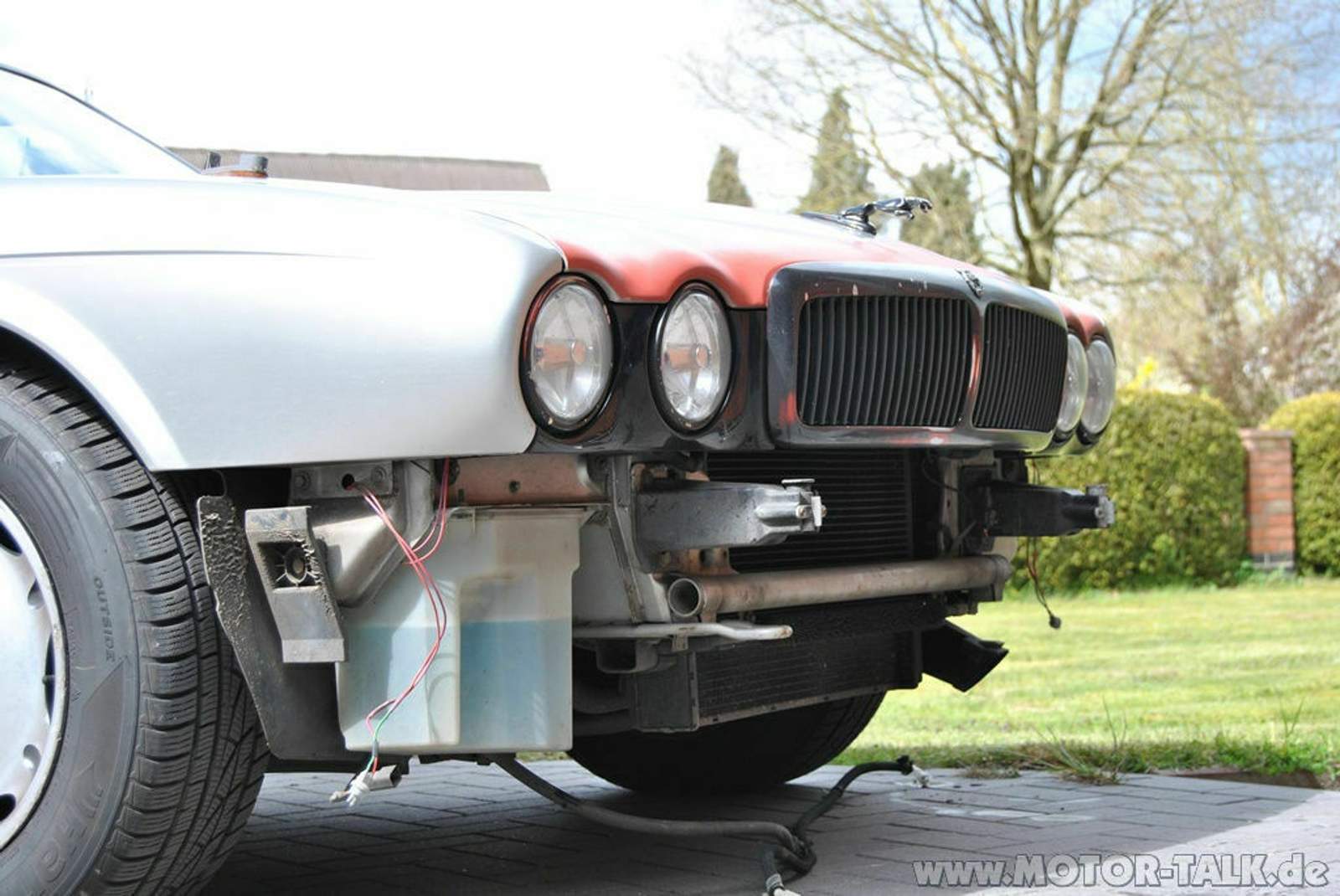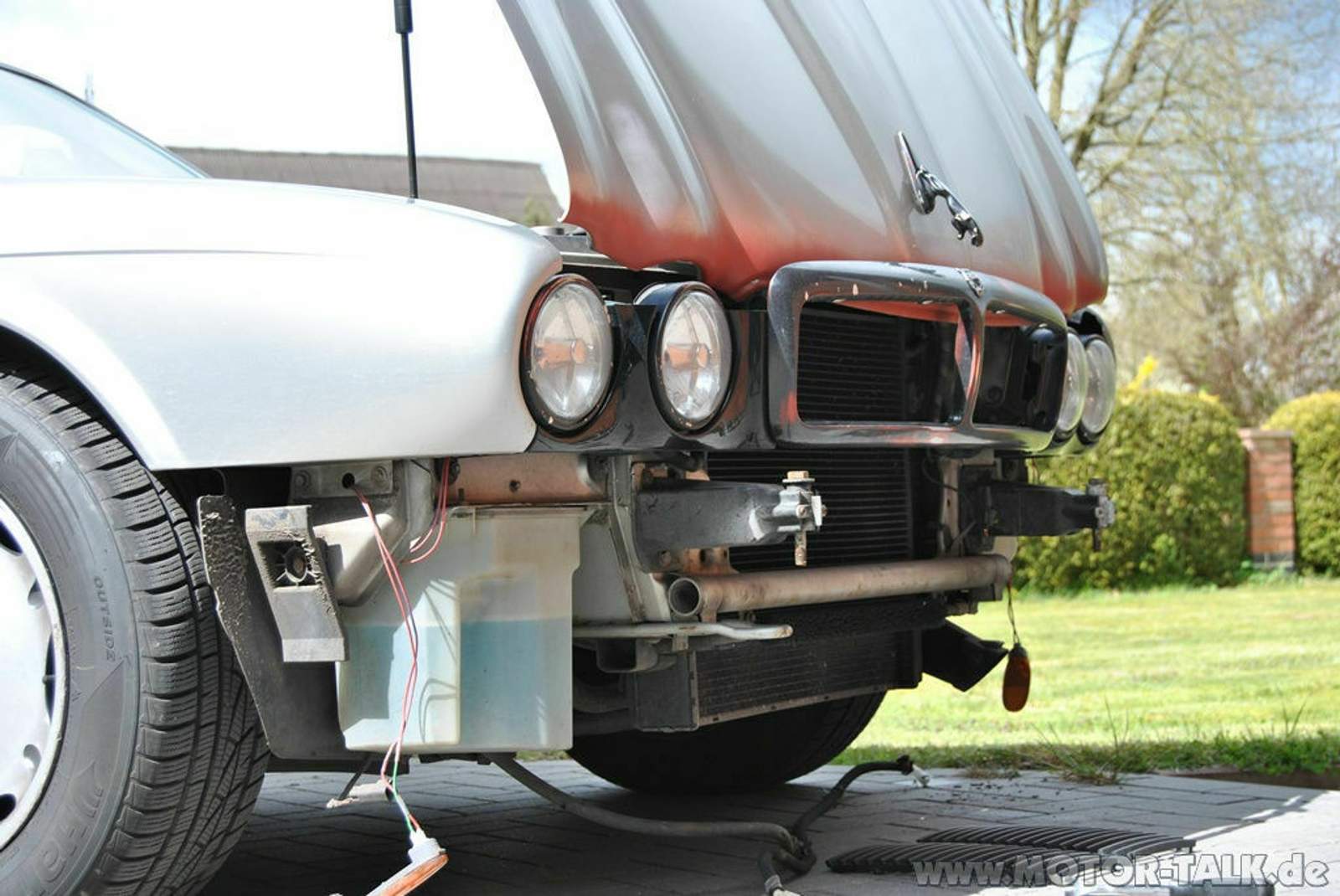 Rusty, mein (treuer) XJ8 hatte leider vor längerer Zeit bei seinen Vorbesitzern einen kleinen Rempler gehabt. Ich habe einst die Stoßstange "geflickt" und die Nase etwas ansehnlicher gestaltet. Das langte nicht, weil die Stoßstange dennoch fröhnlich vor sich hin und her schaukelte. Es war also nicht auf Dauer. Also erwarb ich eine Stoßstange... Dann noch eine... Irgendwann, fragt mich nicht, fand eine Schwarze den Weg auf die Front von Rusty. Naja, Rusty hatte Charakter und konnte sowas tragen... Jeder kann das schwarze Etwas tragen