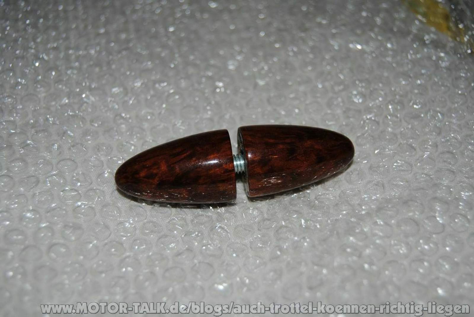 Aus 2 Stücken gutem Wurzelholz (Walnuss) gedreht und danach in Handarbeit geschliffen, poliert, lackiert, poliert, nochmals lackiert und nochmal poliert, stahlt Neuwagencharme aus. Eine super Optik, ein wunderbares Gefühl und eine perfekte Aufwertung für mein Innenraum!