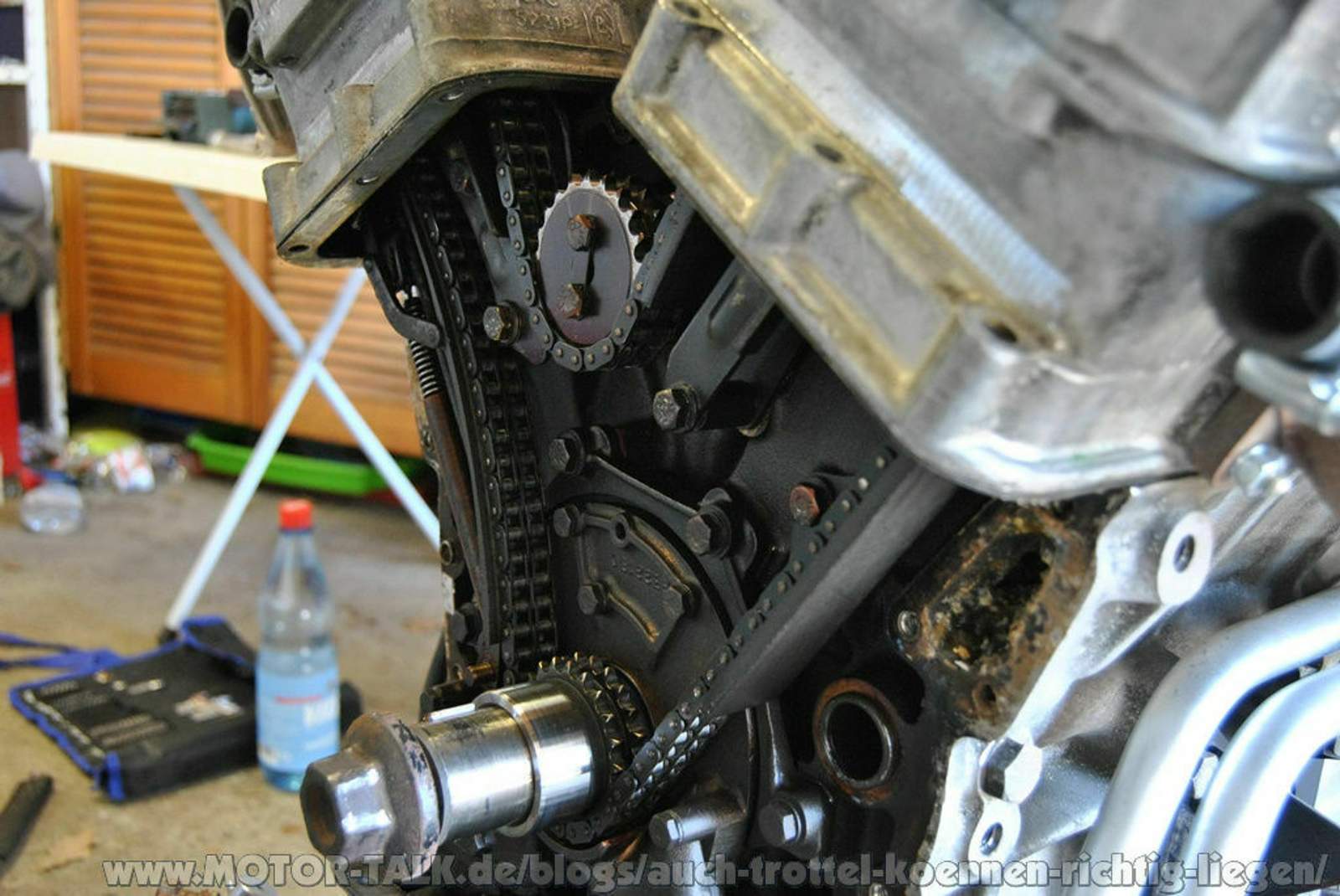 Ich kenne meine Iron Lady. Der Spanner sieht komplett heile aus! Ein paar Mal die Kurbelwelle per Hand durchgedreht um zu schauen, ob da irgendwas klappert oder Geräusche von sich gibt: nichts! Man hätte es spätestens jetzt gemerkt
