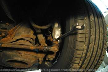 Die Spurstangenköpfe hätten schon da sein sollen... Klasse wenn man sich auf Aussagen von Lieferanten verläßt "ja, ab Kauf bis zu Ihnen ist immer der Fall". Dienstag nach Rücksprache bestellt, Dienstag geliefert, voraussichtlich... Zumindest wenn es die große Gelb-Blaue 3-Buchstaben-Firma es schafft mein Haus wieder drei Mal zu übersehen (Hausnummer steht groß dran, alles gut von der Straße sichtbar, rechts und links vom Haus sind die anderen Hausnummern auch klar erkennbar... GRRRRR! Aber ich weiche vom Thema ab!). Wie dem auch sei, die kann ich ja auch im eingebauten Zustand nachrüsten. Da hatte ich aber keine Lust zu!
