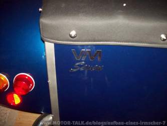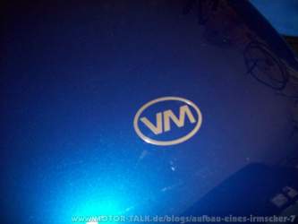 KW 16 (18. 04. 2011 bis 23. 04. 2011) In dieser Woche hat Horst das Logo von VM erstellen, und auf die Kühlerverkleidung (Bild 319) und Heckteil (Bild 320) anbringen lassen. Ob die Logos am Auto bleiben können wird sich bei der Präsentation bei VM ergeben. Anmerkung vom 12. 5.: VM hat das Logo akzeptiert. |