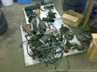 Mein Plan ist ja eher harmlos. Der zu verbauende Motor hat 17 PS mehr als der verbaute, Änderungen im Bereich Achsen und Bremse sind nicht nötig. Der Motor an sich war nicht teuer (250 + Lieferung). Aber jetzt kommt der Haken an der Sache: Wenn das ganze mal draußen ist, dann sollte man alle Macken beseitigen, und Verschleißteile erneuern, an die man sonst schwer rankommt. Ich wills gründlich machen - keine Frage! Und einen kleinen Bonus hab ich auch: Kopfdichtung und Schaftdichtungen sind frisch, eine relativ neue Ölpumpe übernehm ich aus meinem alten Motor, eine neue Kupplung und ein Schwallblech stehen mir erstmal zur Verfügung (Danke, Ringo!).