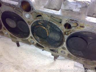 Bilanz des Tages: Der Motor macht nen recht fitten Eindruck. Getriebeseitig sifft er ganz schön, aber das ist ja in den Griff zu kriegen. Bisher einziges Manko: die Dichtfläche hinter dem Wasserflansch am Zylinderkopf sieht aus wie ne Kraterlandschaft. Mal schauen, ob wir das ausgebügelt kriegen...