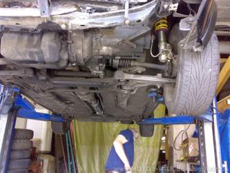 Zum Abschluss noch ein kleiner Blick auf die Unterseite des (inzwischen) antriebslosen Gefährts. Der originale U-Schutz ist noch drauf und verrichtet tapfer seinen Dienst.