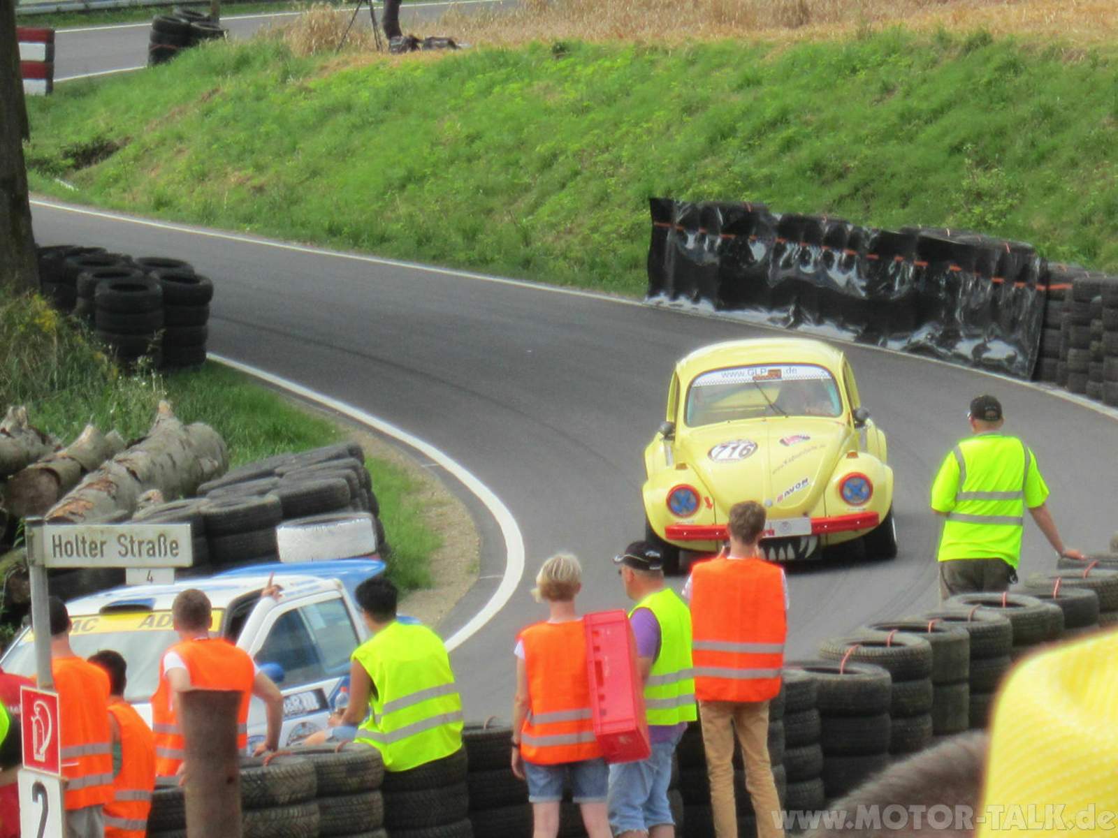 Als nächstes dann aber ab auf’m Berg. Die Autos mal auf dem, übrigens erst frisch gemachten Asphalt, am Limit bewegen sehen. Und ich kann Euch sagen, ich wurde nicht enttäuscht. Die Jungs und Mädels hinter den Lenkrädern lassen es ordentlich krachen. Der oder andere sogar mit etwas zuviel Übermut, sodass dann nur noch Dozer/Hammer/Schweißgerät halfen.