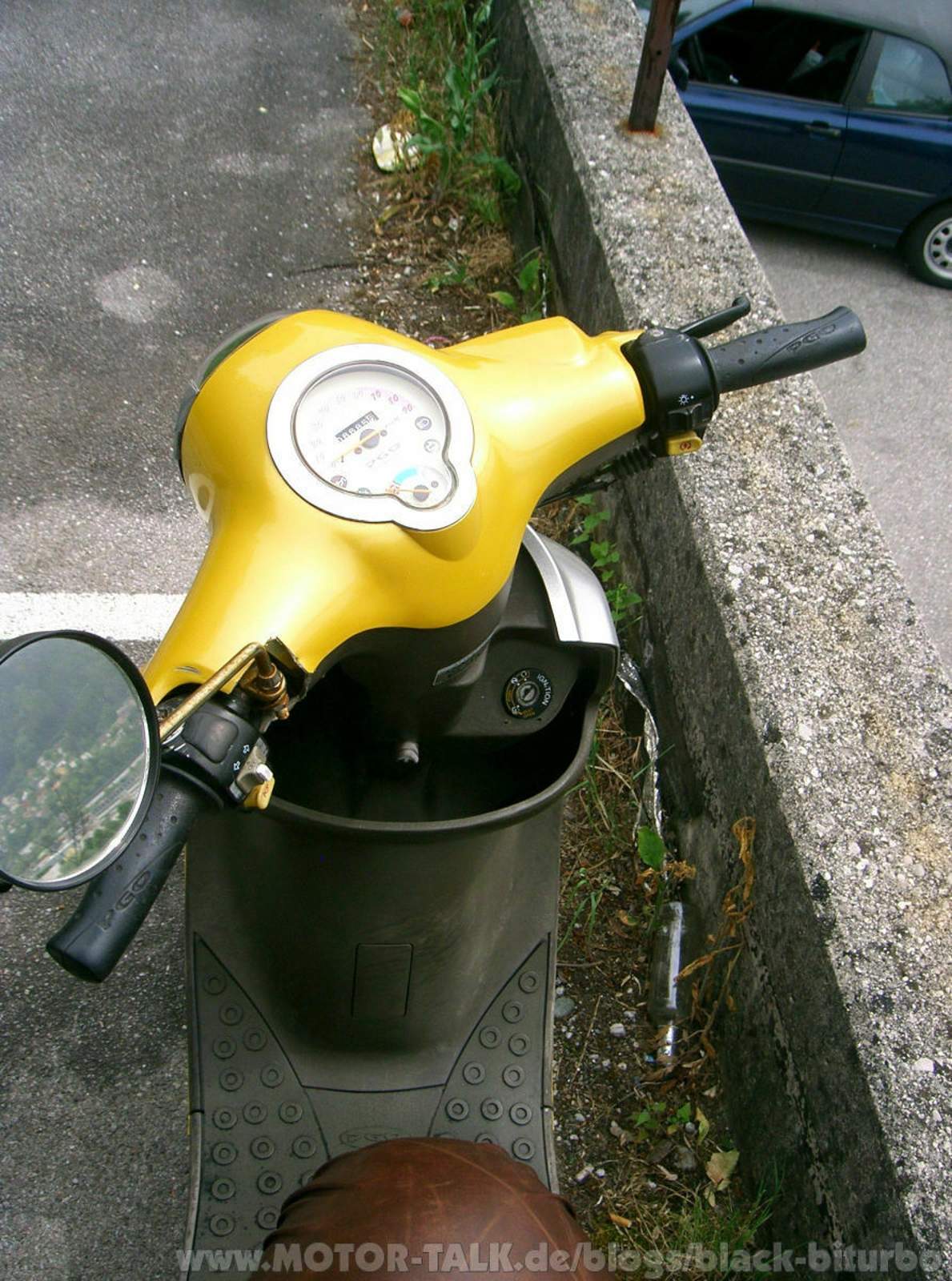 Es ist ein PGO Roadshow 50er Roller BJ. 00 welchen ich heute preiswert erstanden habe. Ich hoffe jetzt das ein oder andere parkknöllchen in der Stadt weniger zu bekommen und kann endlich das Auto ein wenig schonen.
