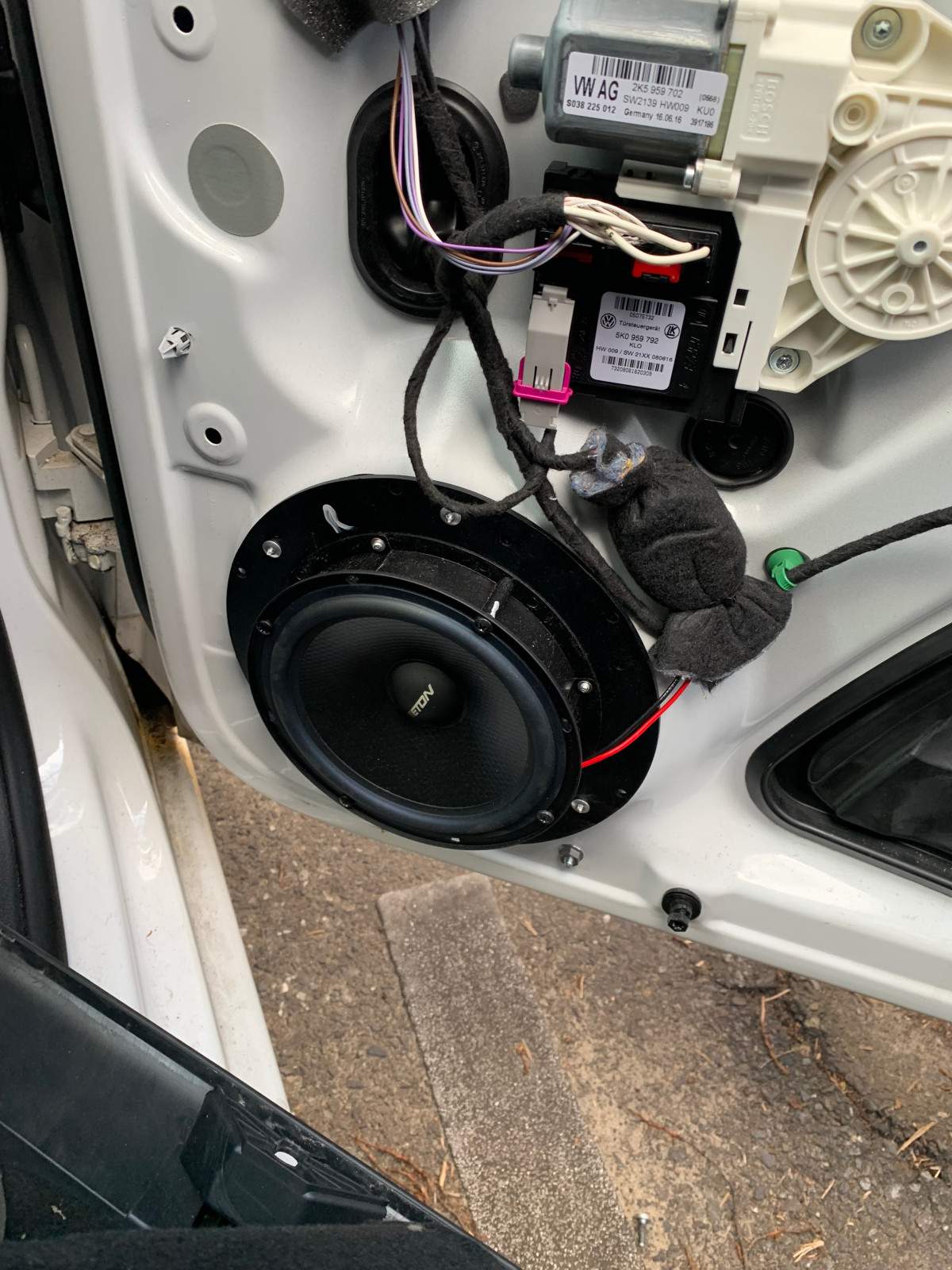 Tipp: Es empfiehlt sich sowohl die Kabel als auch den Bauplatz noch etwas mit dünnem Moosgummi zu versehen, wenn man mehr Leistung auf die Hochtöner bringt oder auch durch Vibrationen während der Fahrt kann es hier sonst zu unangenehmem Rasseln kommen. Ich selbst hatte die Hochtöner noch 2x raus und hatte hier nachgebessert, bis ich zufrieden war.