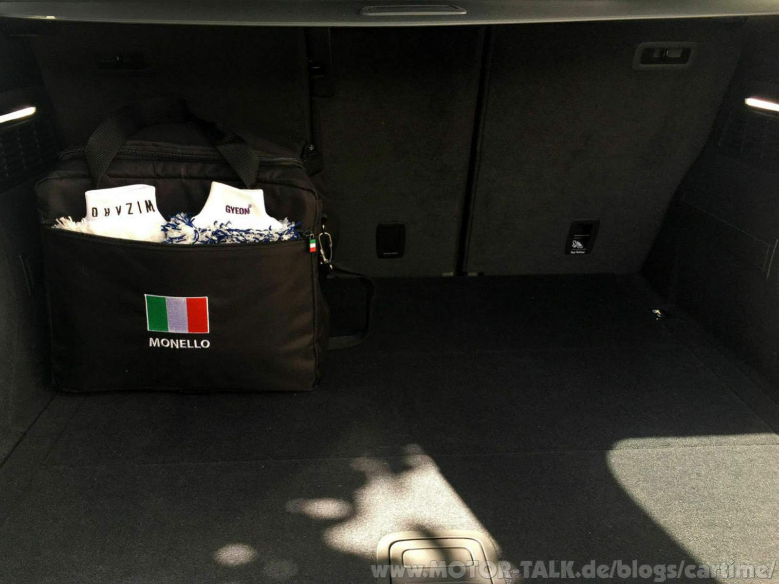 Viele Autopflegetaschen habe ich mir zuvor im Netz angeschaut. Zunächst die längliche von Petzholdt‘s, diese kam nicht in Frage da sie u.a. offen ist. Möchte dort auch Zuhause im Regal noch etwas verschlossen lagern. Ansonsten bestimmt auch gut. Als nächstes fand ich die Bags von Gyeon. Diese sind von der Höhe wohl besser für die hauseigenen Gyeon Flaschen konzipiert. Wer sie kennt weiß das sie nicht riesig sind. Es gibt bei der großen Gyeon Tasche ein verschiebbares „Schienensystem“ wo man sich seine Öffnungen selber bauen kann. Ich finde, dass der Monello Bag innen vom Platz einfach besser nutzbar ist. Die Gyeon ist mit 30 cm zwar gleich hoch, hat innen aber eine vorgegebene Abtrennung zum oberen Abschnitt (z.B. für Trockentücher). Dadurch ist unten weniger Platz nach oben z.B. für hohe Flaschen. Des weiteren hat die Cubo XL ein Klettband zum anheften an den Veloursboden des Kofferraumes. Dazu gibt es noch Gummi-Füßchen für festen Halt. Außen gibt es auch noch flache Fächer. Diese Features haben die Gyeon Taschen leider auch nicht. Eine weitere Tasche von Shiny Garage schien mir innen auch, für meinen Geschmack, etwas zu eng geschnitten. So blieben die Monello‘s die Favoriten.