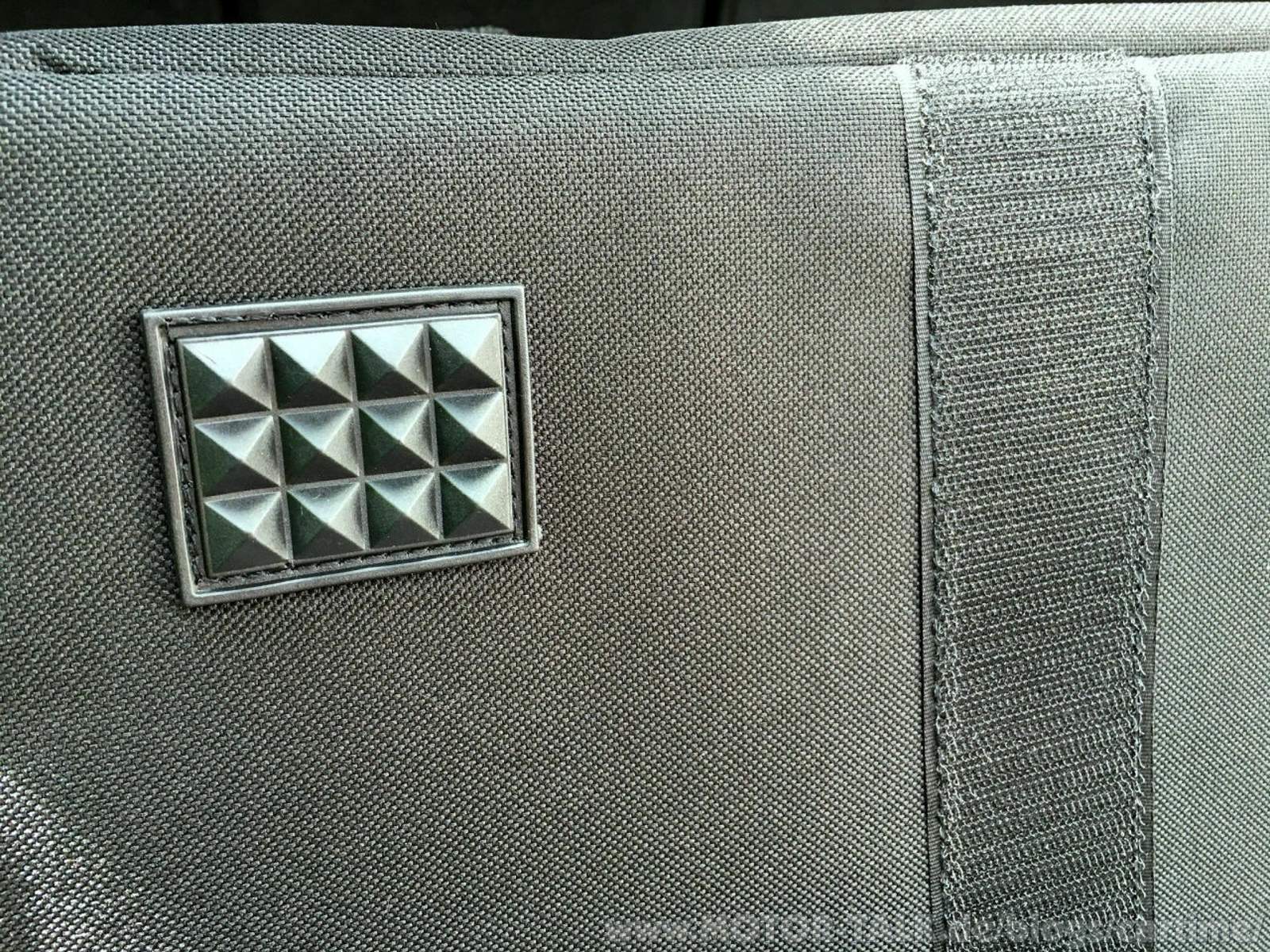 Beim Aufklappen fällt mir gleich das Netz auf der Rückseite des Deckels aus. Dort ist Platz für ein Trockentuch. Innen gibt es 12 Fächer für Flaschen oder sonstiges. Übrigens passt auch eine Gloria FM 10 (31 cm hoch) mit rein. Ein zwei der kleinen 0,5 L Kwazar Mercury Flaschen (27 cm hoch) würden ebenfalls Platz finden. Dazu noch eine Halterung für 3 Pinsel, zwei größere und in der Mitte ein schmalen. Vorne gibt es ein großes schmales Fach. Dort passen zwei Waschhandschuhe rein, wenn man oben den Reißverschluss etwas offen lässt. Hinten gibt es auch noch mal zwei seperate schmale Fächer z.B. für Mikrofasertücher. Zum Tragen gibt es zwei Haltegriffe oder ein Gurt zum umhängen. Den Gurt kann man auch entfernen.