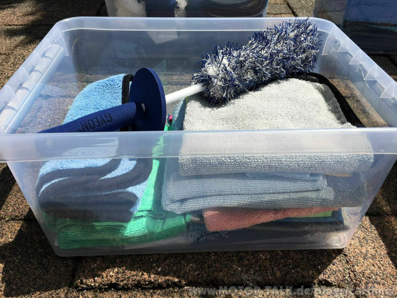 So hab ich mich dafür entschieden, dass ich in die Cubo XL das nötigste packe für die Abfahrt direkt in die Waschbox und gleichzeitig das nötigste dort auch danach noch lager. Nur zum Waschen, Wachs- und Poliersachen usw. nicht. So hätte ich wieder etwas Luft für mehr Mikrofasertücher. Hab ja laut Martin zu wenig.