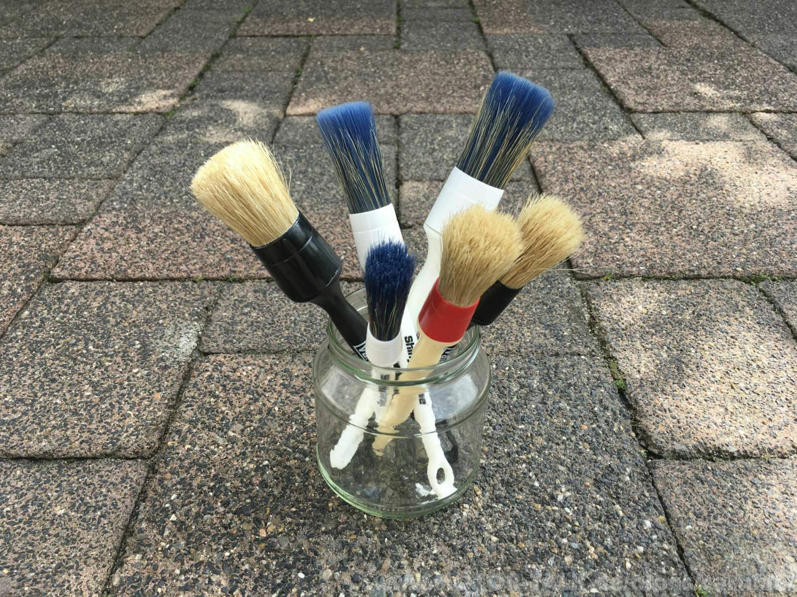 Beim 5er Bürstenhalter passen jeweils 5 Bürsten nebeneinander. Wie z.B. EZ Detail Felgenbürsten. Schweller-, Reifen- und andere Felgenbürsten finden ebenfalls Platz. Man kann auch noch eine kleine noch darüber hängen. |